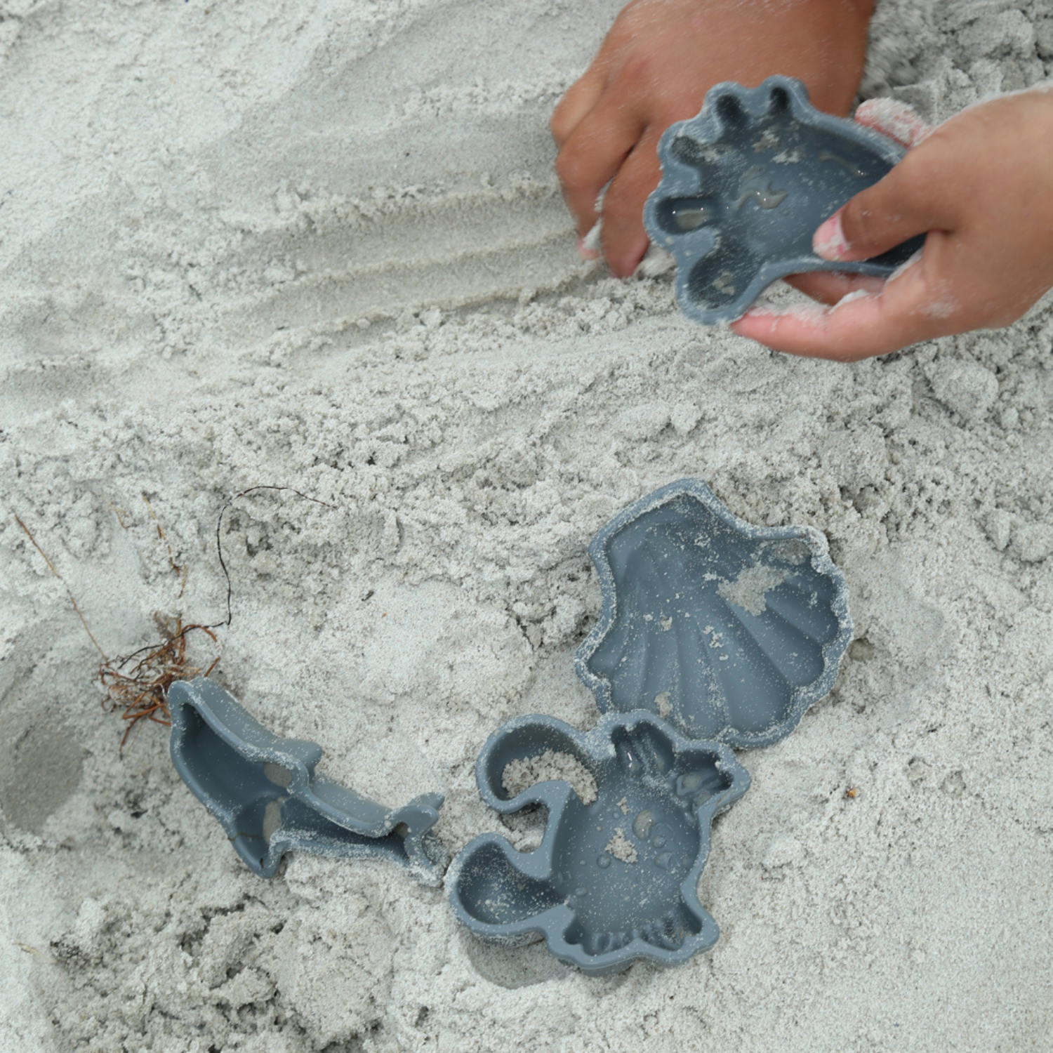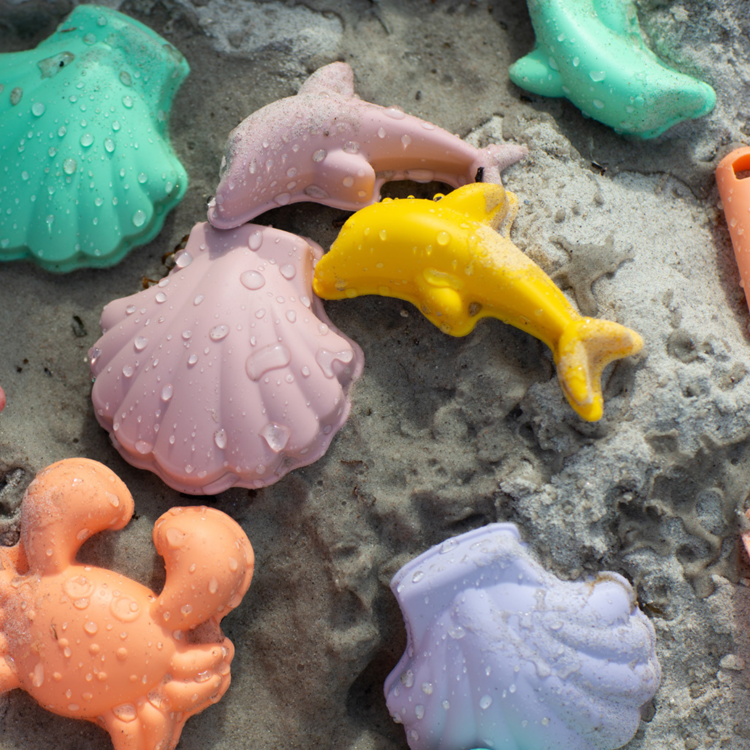 Zabawki do piasku i wody dla dzieci to idealny sposób na spędzenie czasu na plaży lub w piaskownicy. Foremki Scrunch to unikalny i bardzo praktyczny zestaw. W skład zestawu wchodzą: 4 miękkie i wytrzymałe foremki wykonane z silikonu - krab, delfin, muszelka i dziecięca stopa.