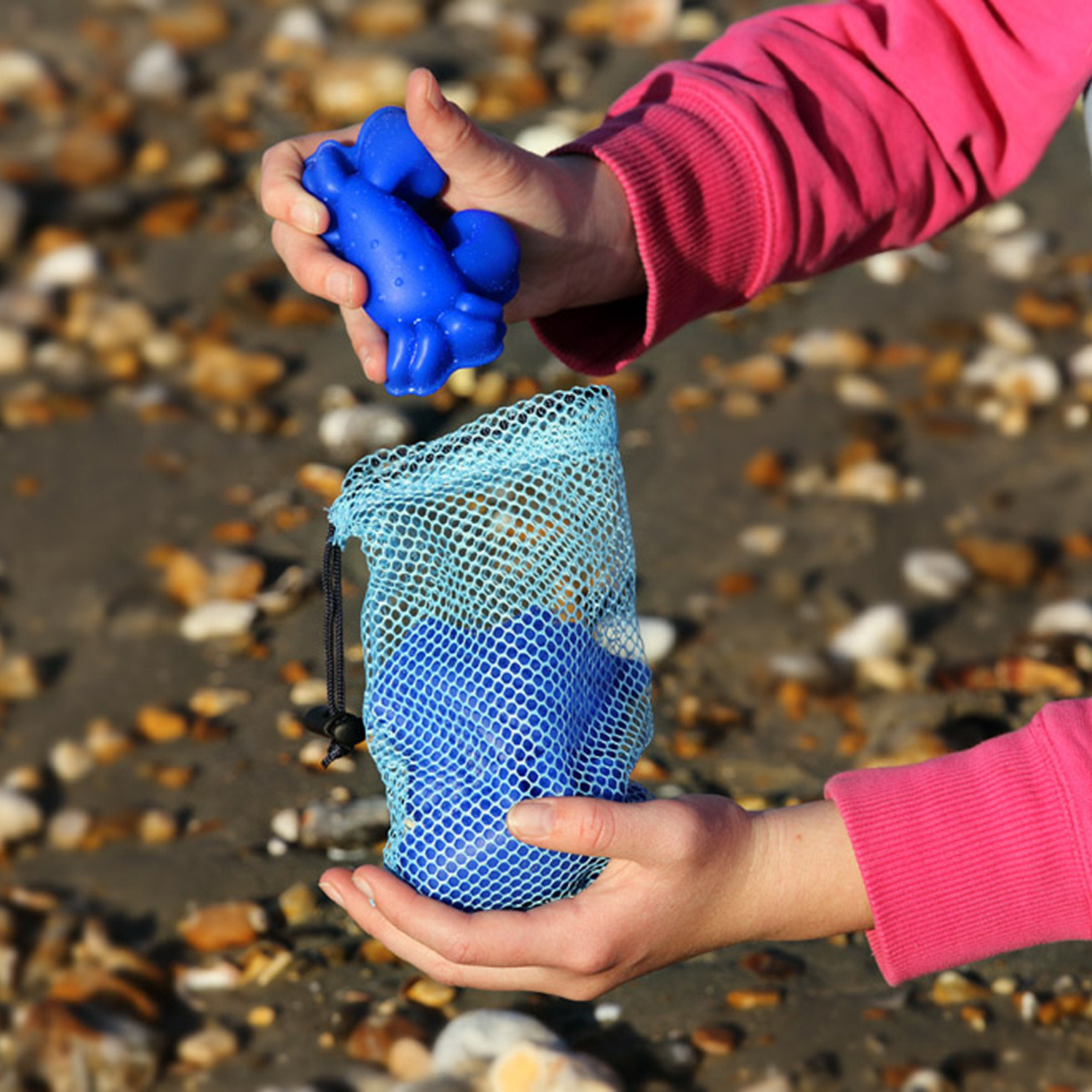 Foremki Scrunch są niezwykle kompaktowe i można je zgnieść, aby zmieściły się w torebce, plecaku lub walizce. Dzięki temu są idealnym towarzyszem na wakacjach czy wypadach na plażę. Foremki Scrunch są również łatwe w utrzymaniu czystości, a dzięki woreczkowi z siatki, w którym są zapakowane, można łatwo pozbyć się nadmiaru piasku i wody podczas powrotu do domu. Idealna zabawka dla dzieci, która zapewni nie tylko wiele frajdy, ale też pobudzi ich wyobraźnię i rozwinie zdolności manualne.