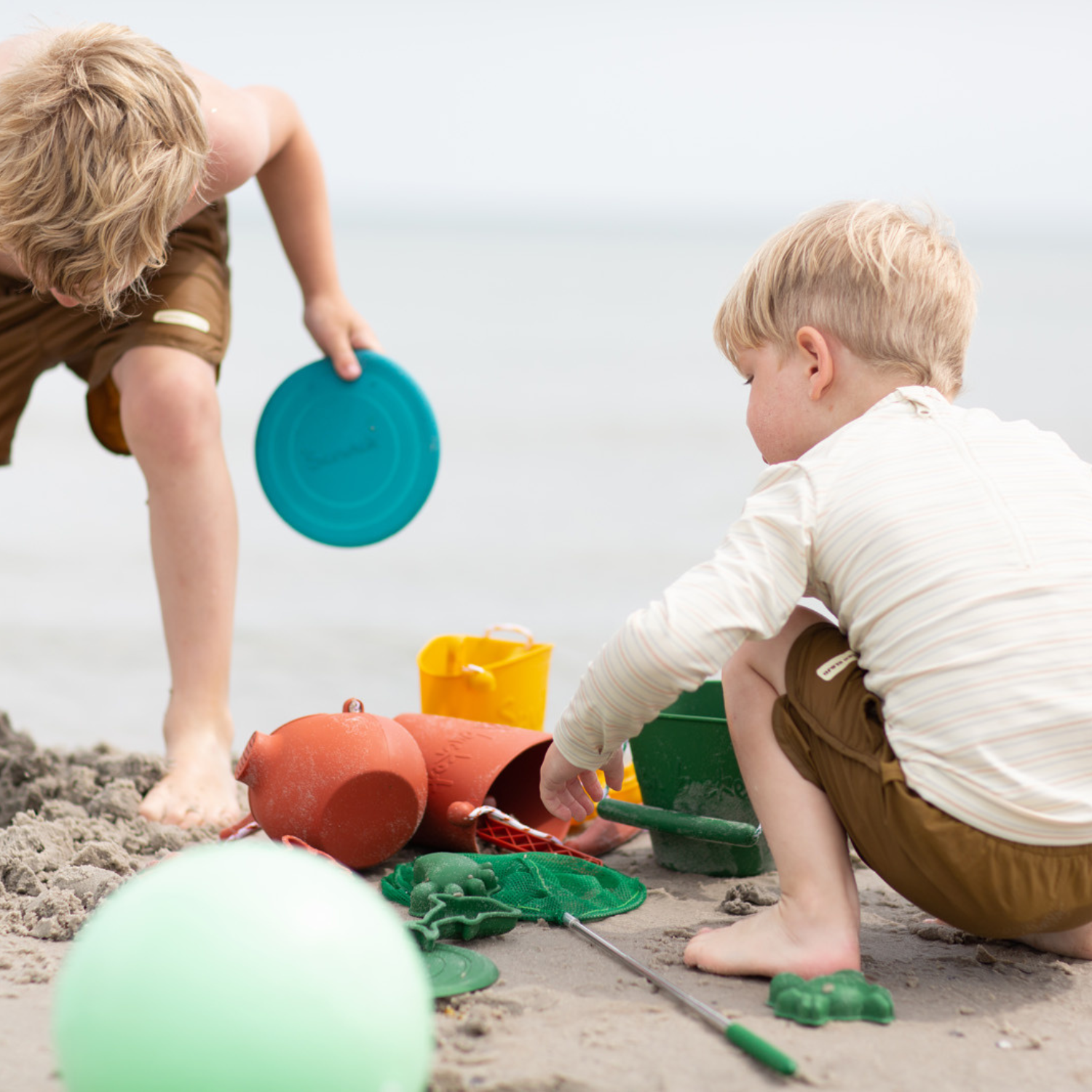 Pożegnaj się z pękniętymi plastikowymi wiaderkami i jednorazowymi plastikowymi łopatkami - zabawki na plażę i do piaskownicy Scrunch to produkt na całe życie. Silikonowe wiaderka nie tylko mogą być w 100% poddane recyclingowi, ale również możesz zrolować je do bardzo małych rozmiarów i zabrać ze sobą na wakacje. Silikon z którego wykonane jest większość zabawek Scrunch jest trwały, elastyczny, odporny na plamy, łatwy do czyszczenia i jest w stanie wytrzymać ekstremalne temperatury otoczenia.