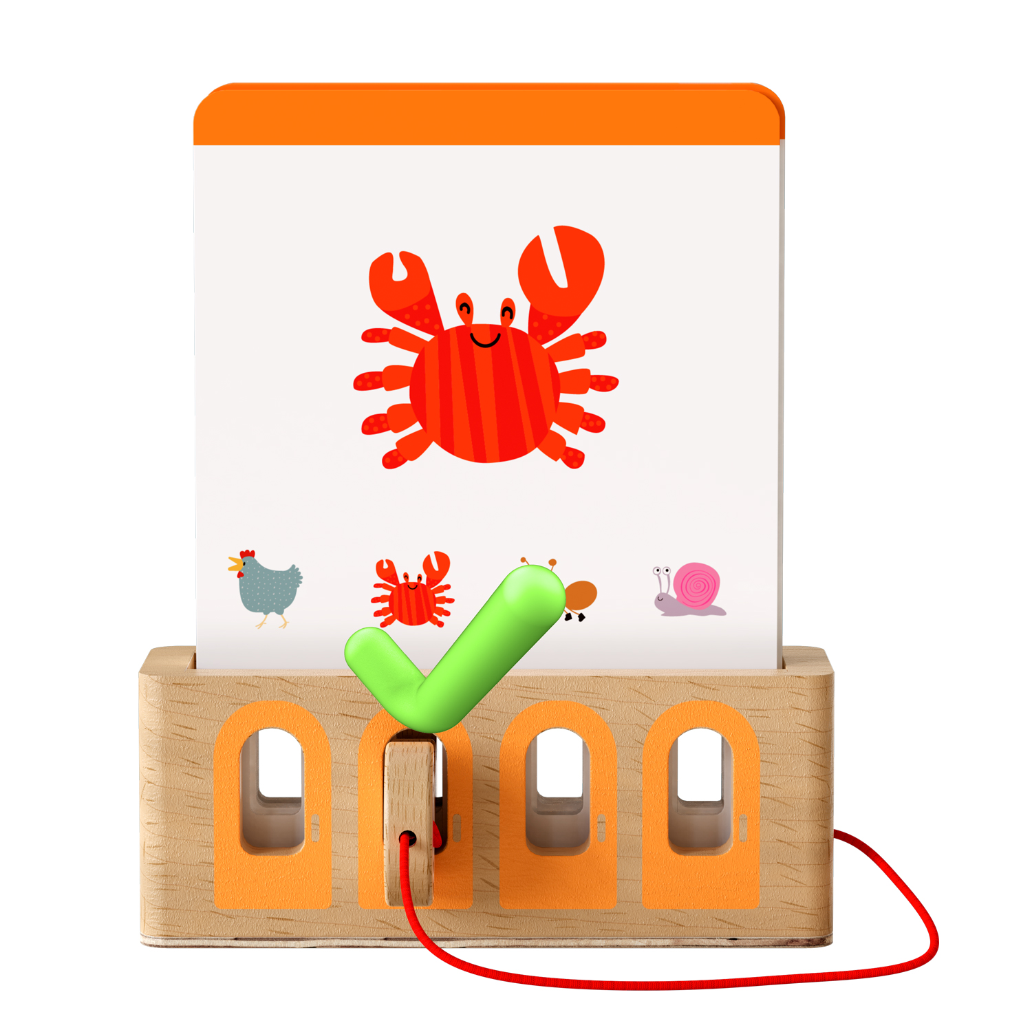 Zabawa polega na rozwiązywaniu zadań na specjalnych kartach – dziecko wybiera odpowiedź i sprawdza ją przy pomocy magicznego kluczyka. Jeśli wybór jest poprawny, karta zostaje odblokowana – a maluch z radością widzi efekt swojej pracy! To idealne połączenie zabawy i nauki zgodne z duchem metody Montessori – bez ekranów, baterii i hałasu, za to z ogromną dawką satysfakcji i skupienia.