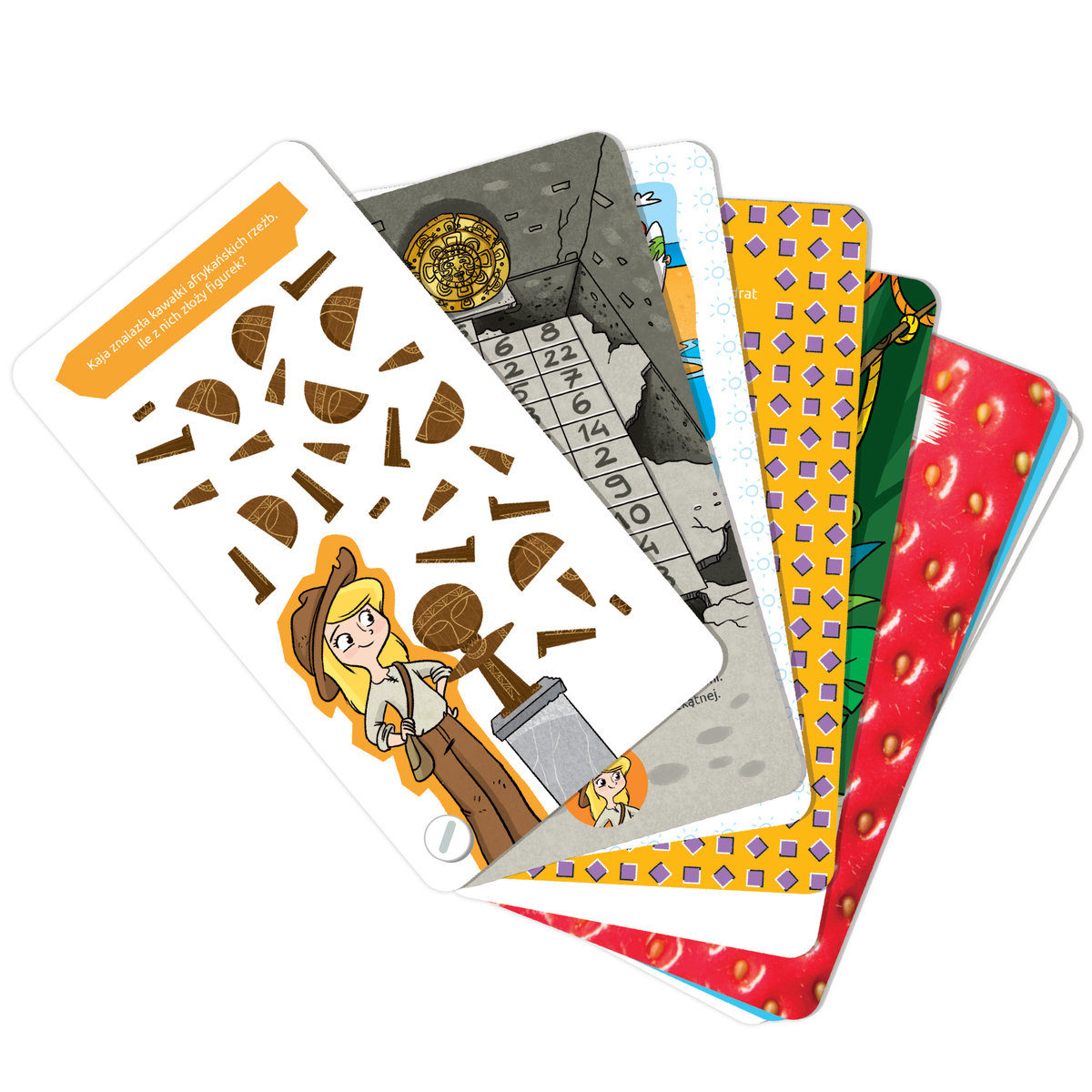 Wewnątrz pudełka kryją się: iluzje optyczne, labirynty, rebusy, kolorowanki, równania, kwadraty magiczne, zagadki logiczne, krzyżówki oraz wiele innych zabaw.