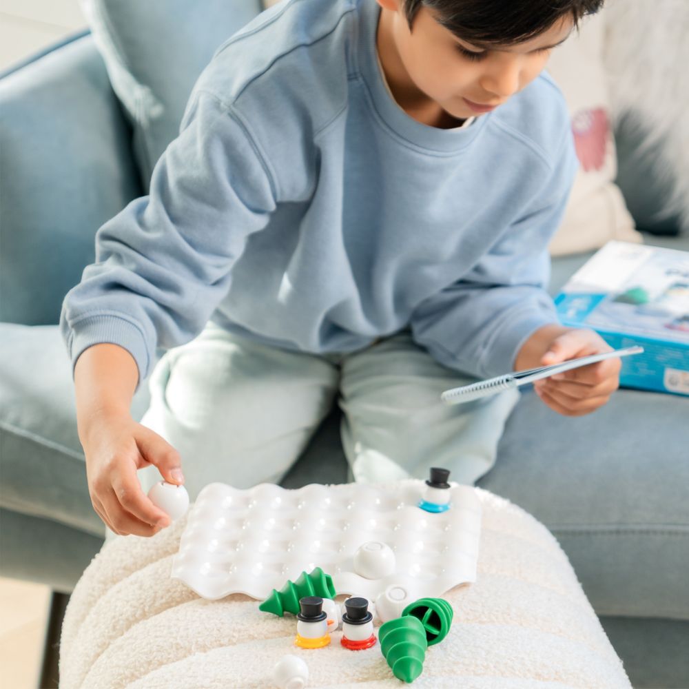 Umieść na planszy początkowe elementy zgodnie z ułożeniem z wybranego przez siebie zadania. Następnie turlaj śnieżne kule po planszy tak, aby stworzyć bałwanka. Pamiętaj jednak o właściwym zachowaniu proporcji: duża kula, potem średnia, a dopiero na końcu głowa. Czy jesteś gotowy na zimową przygodę? Podejmij wyzwanie i rozwiąż wszystkie 80 zadań.