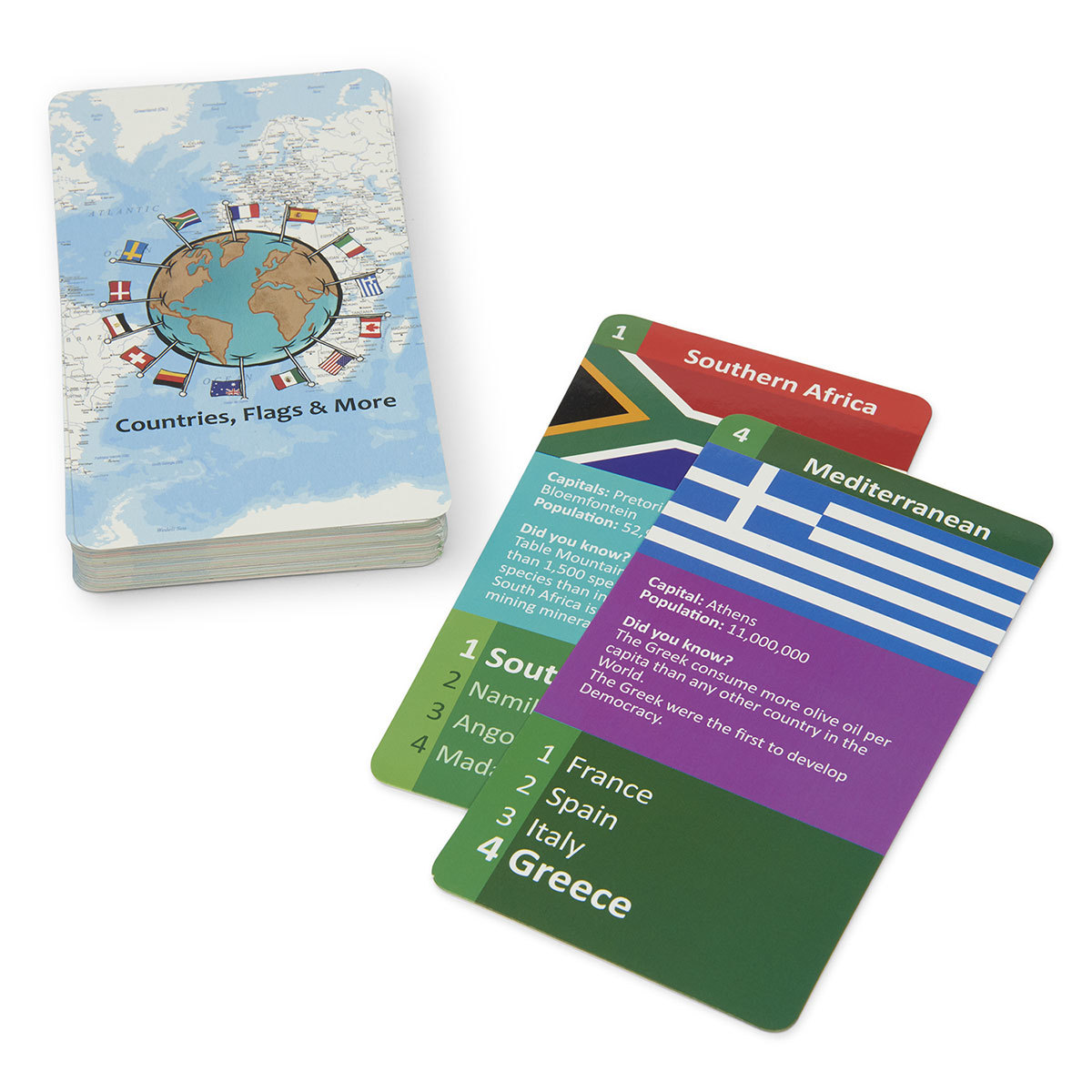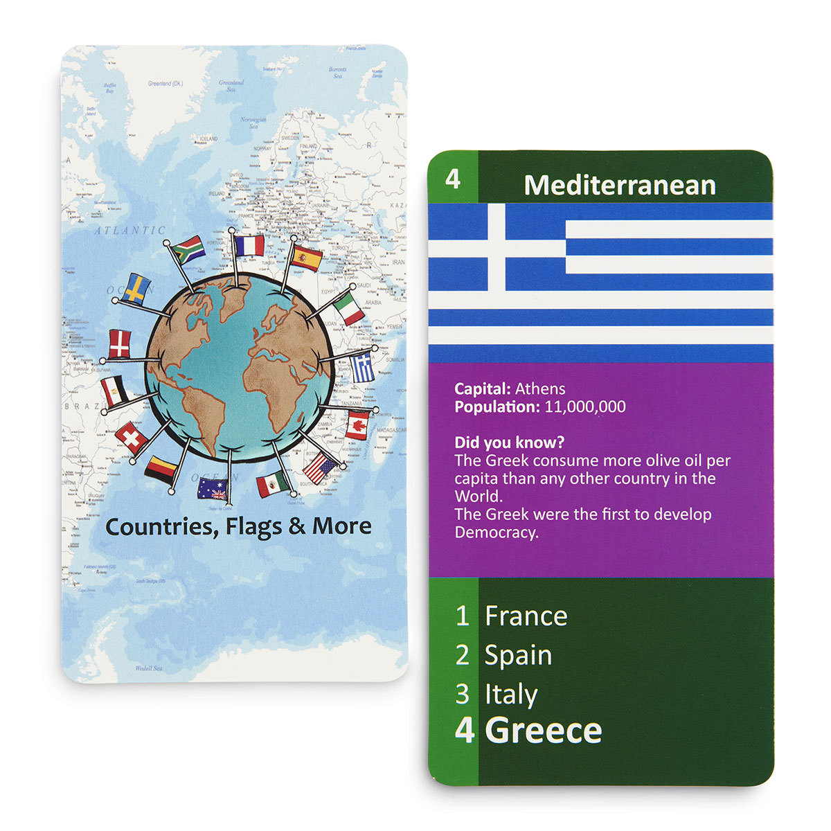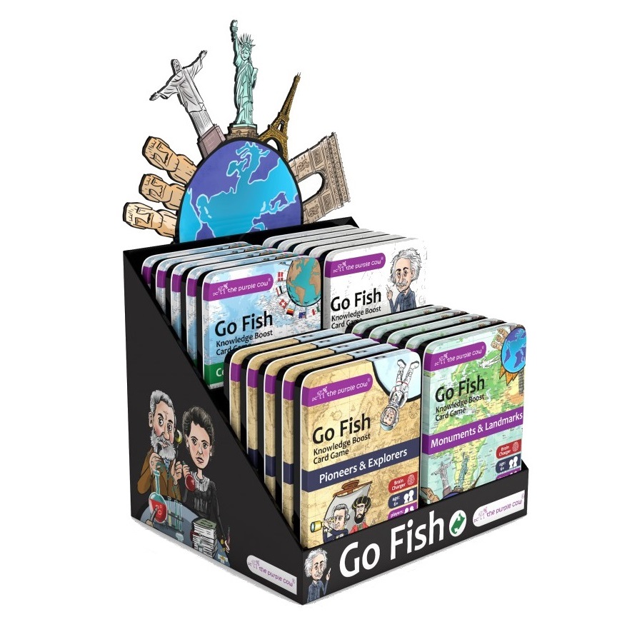 Podróżna gra karciana Kwartet The Purple Cow - Go Fish zapewni doskonałą zabawę dla całej rodziny. Gra polega na zebraniu 4 kart z danej serii tzw. Kwartetu, np. 4 morza, 4 flagi. Gracze muszą wytypować poprzez pytania jaką kartę posiada przeciwnik. Jeżeli osoba zapytana posiada pożądaną kartę - oddaje ją przeciwnikowi. W ten sposób zbiera się karty z serii. Wygrywa gracz, któremu udało się zdobyć najwięcej kwartetów. Na każdej karcie zawarte są bardzo ciekawe informacje dotyczące flag, państw, populacji. Gra jest w języku angielskim z dołączoną polską instrukcją.