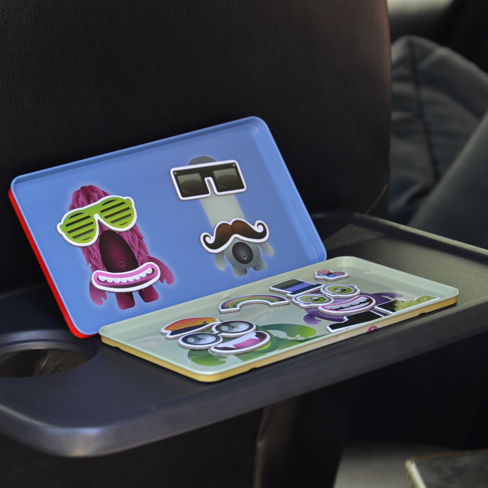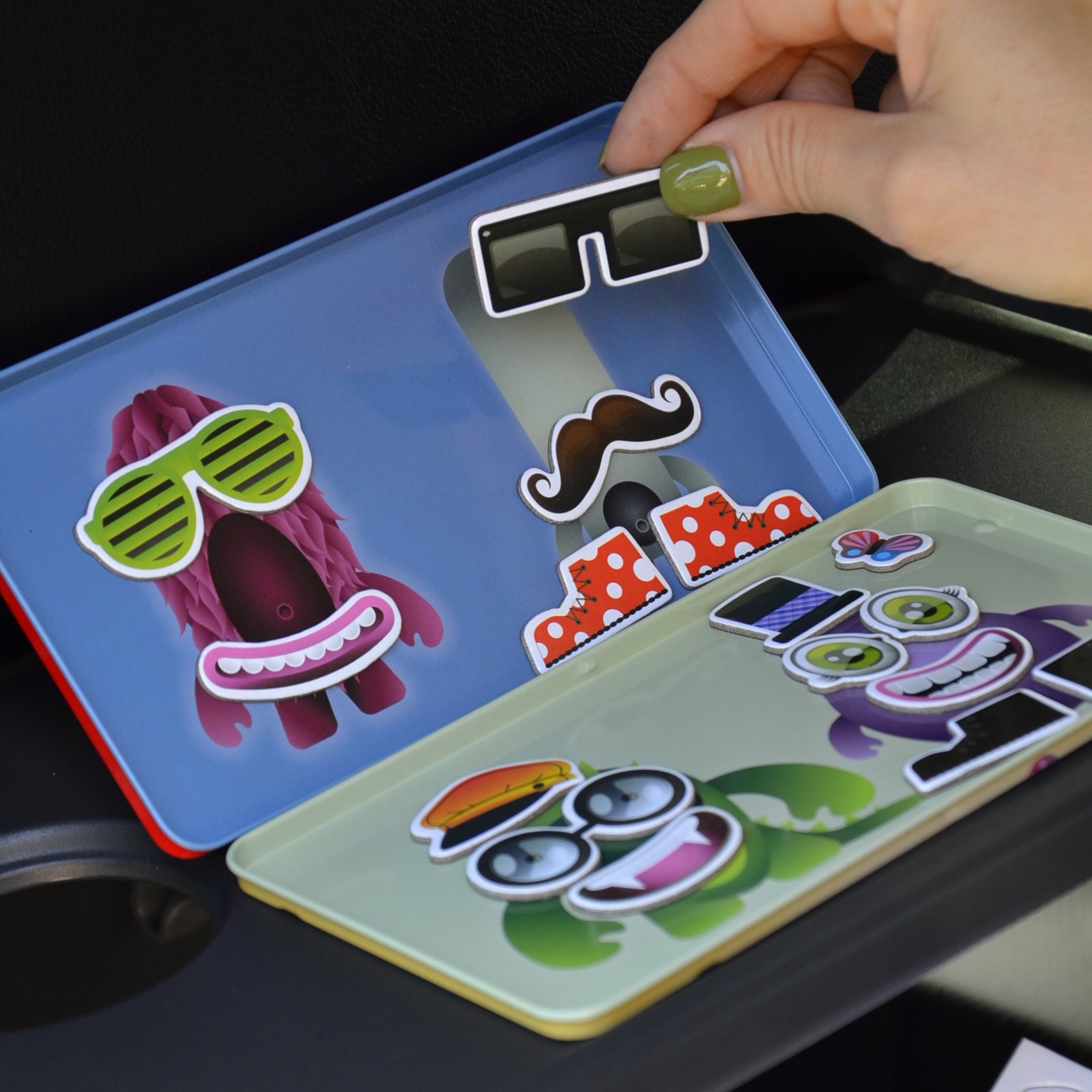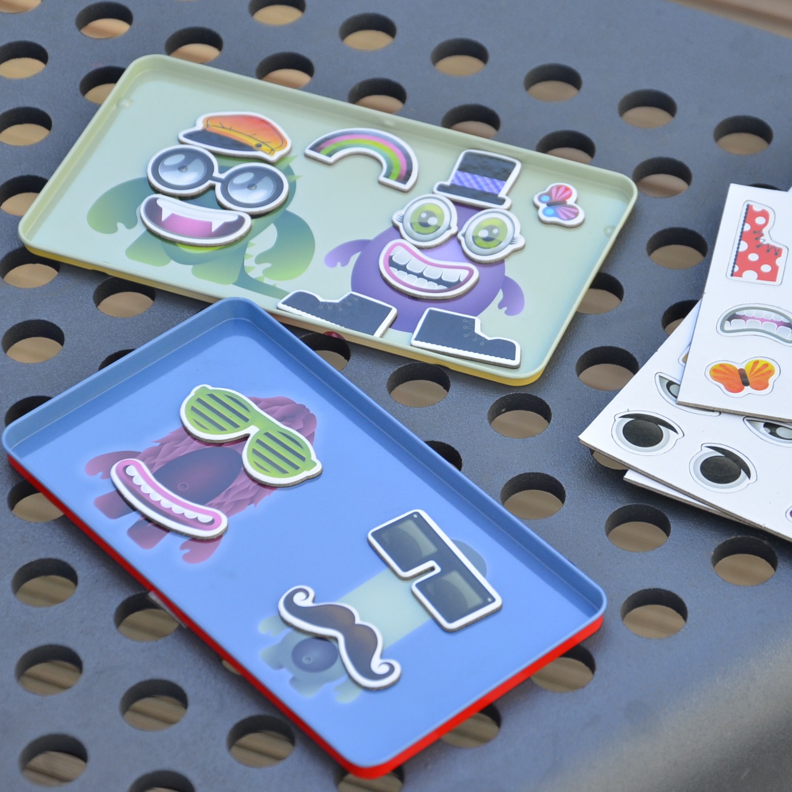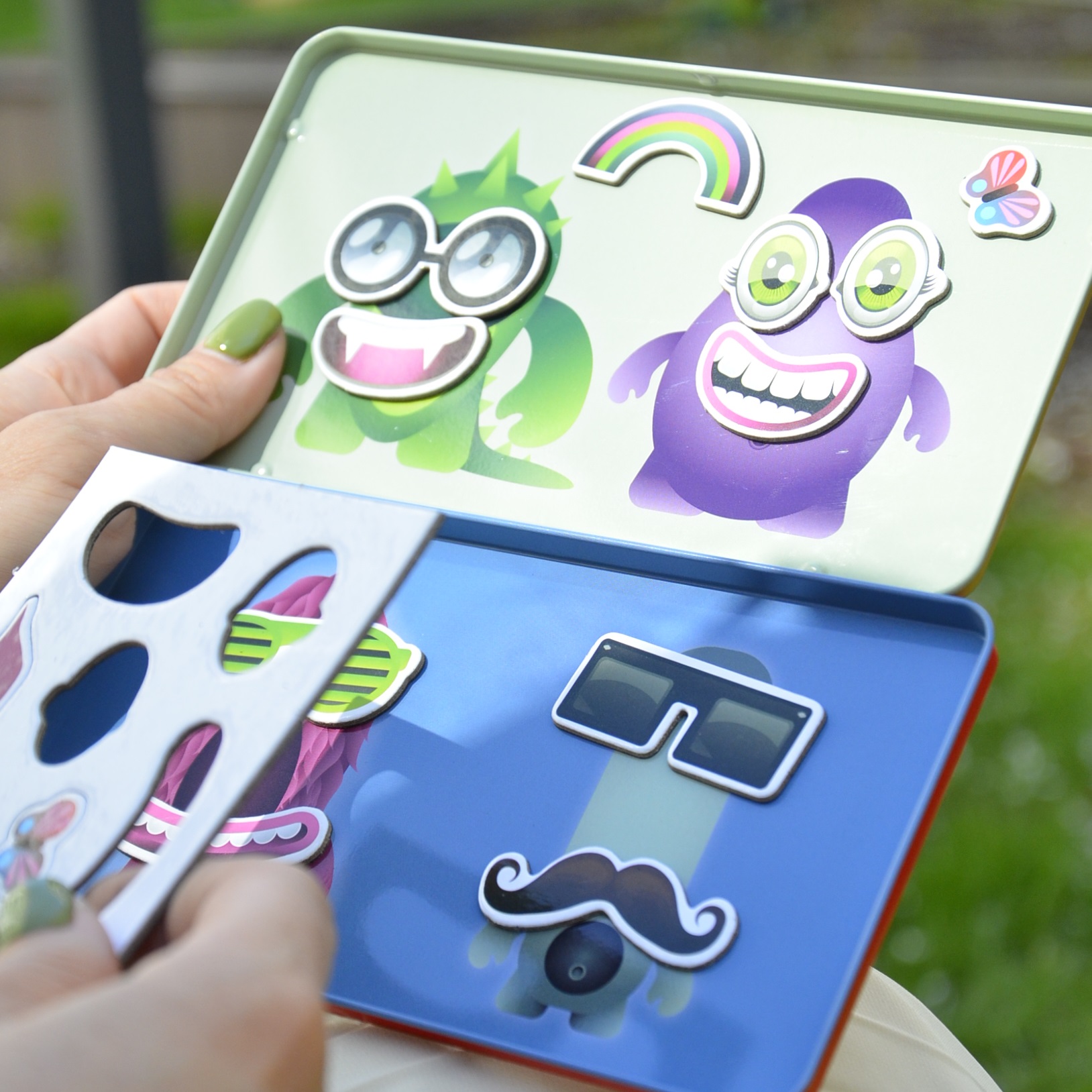 Stwórz najbardziej potworne kreacje z podróżną układanką magnetyczną The Purple Cow. W poręcznym metalowym opakowaniu znajdziesz kolorowe magnesy, które pomogą Ci zaprojektować wyjątkowe kreacje dla dziwadeł znajdujących się na planszach.