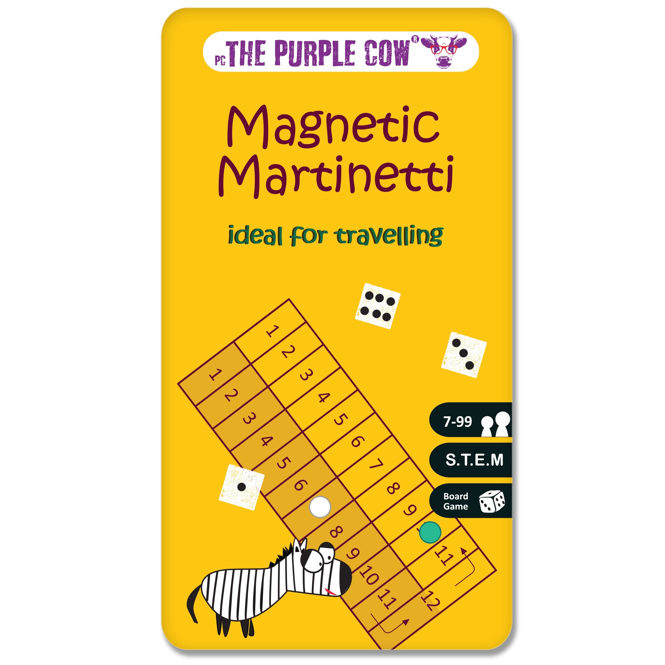 Martinetti marki The Purple Cow to kultowa gra w kości, która ma swoje korzenie w Starożytnym Rzymie. Polega na "wspinaniu się" w górę do numeru 12 i szybkim powrocie na Start. Jednak w Martinetti, nie tylko szczęście, ale także umiejętności matematyczne są kluczem do zwycięstwa!