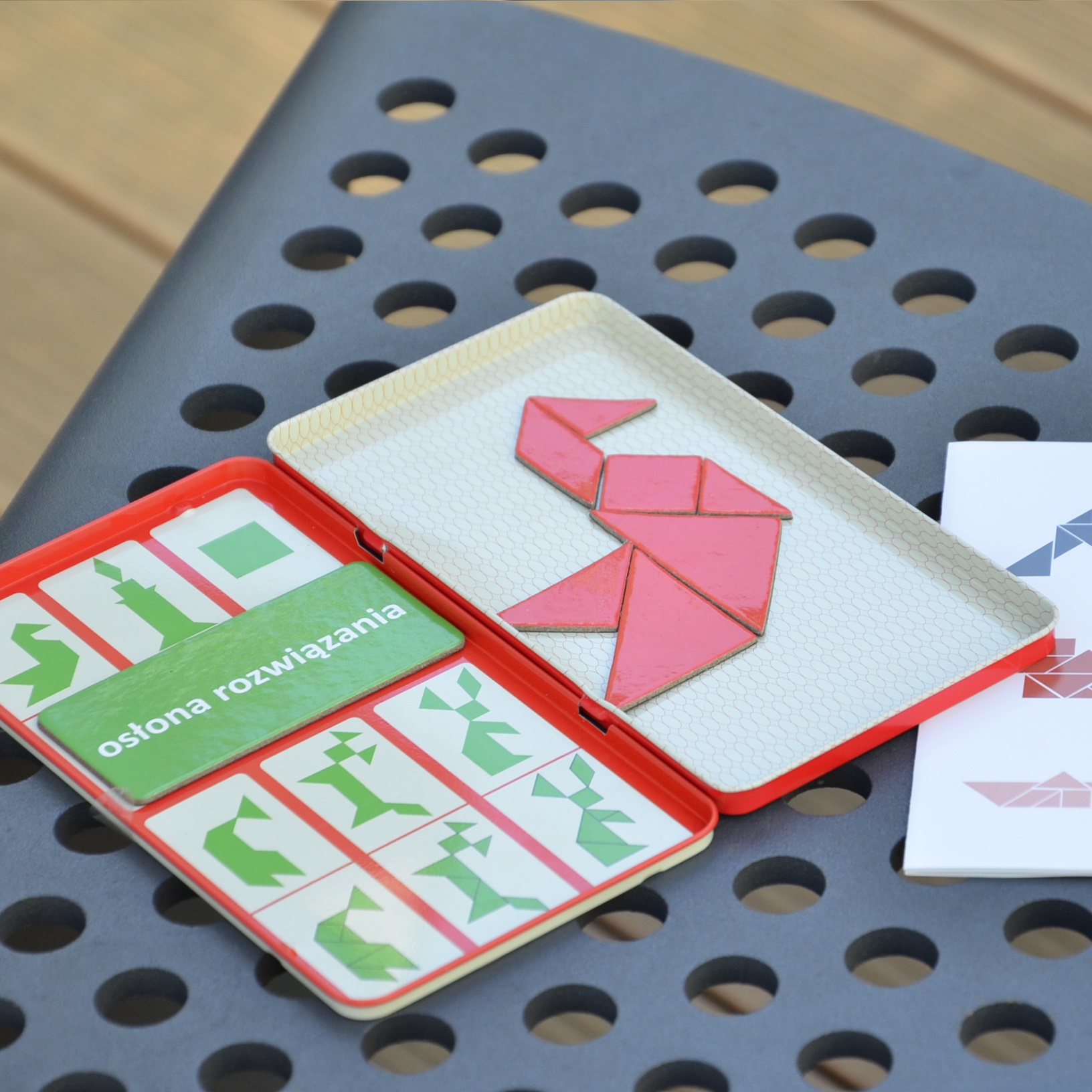 Tangram jest łamigłówką pochodzącą z Chin. Zasady są proste, ale możliwości gry jest nieskończenie wiele. Gra ta rozwija wyobraźnię przestrzenną i uczy rozwiązywania problemów. Cel gry to odtwarzanie układów elementów, prezentowanych na obrazkach, przy pomocy 7 figur geometrycznych.