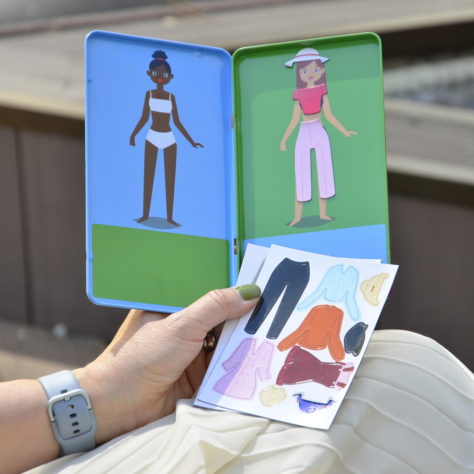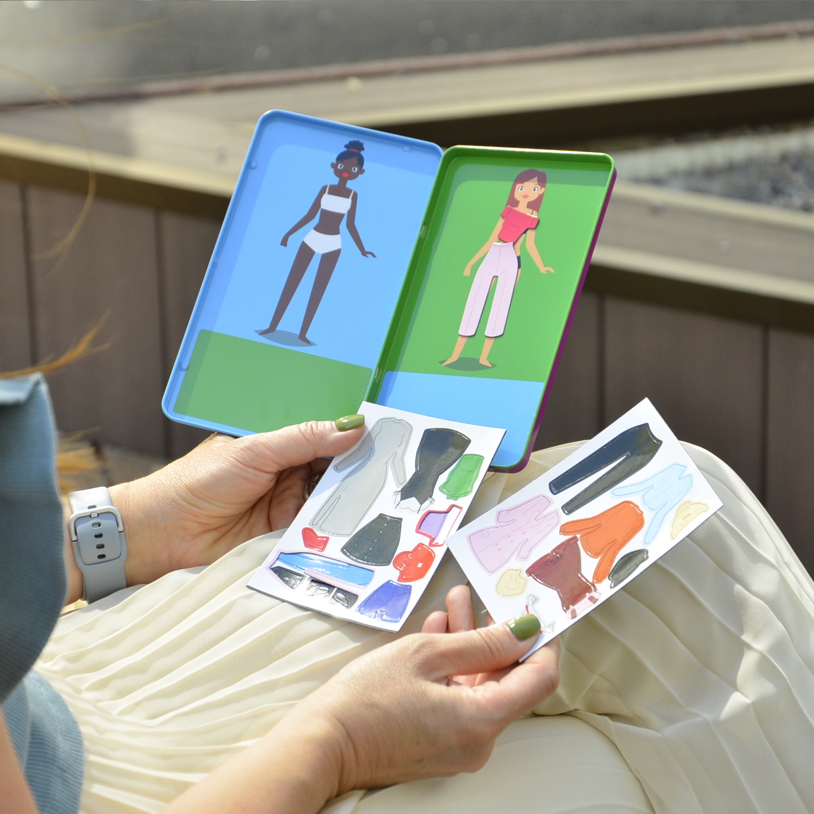 Zabawa z ubierankami to wymarzone zajęcie dla każdej przyszłej projektantki mody. Teraz Ubieranki w podróżnej wersji od The Purple Cow możesz zabrać ze sobą wszędzie. Gra ma praktyczne metalowe opakowanie oraz magnetyczne elementy, zapobiegające gubieniu i przesuwaniu na planszy. Możesz ją w dowolnym momencie zamknąć i po czasie wrócić do zabawy.