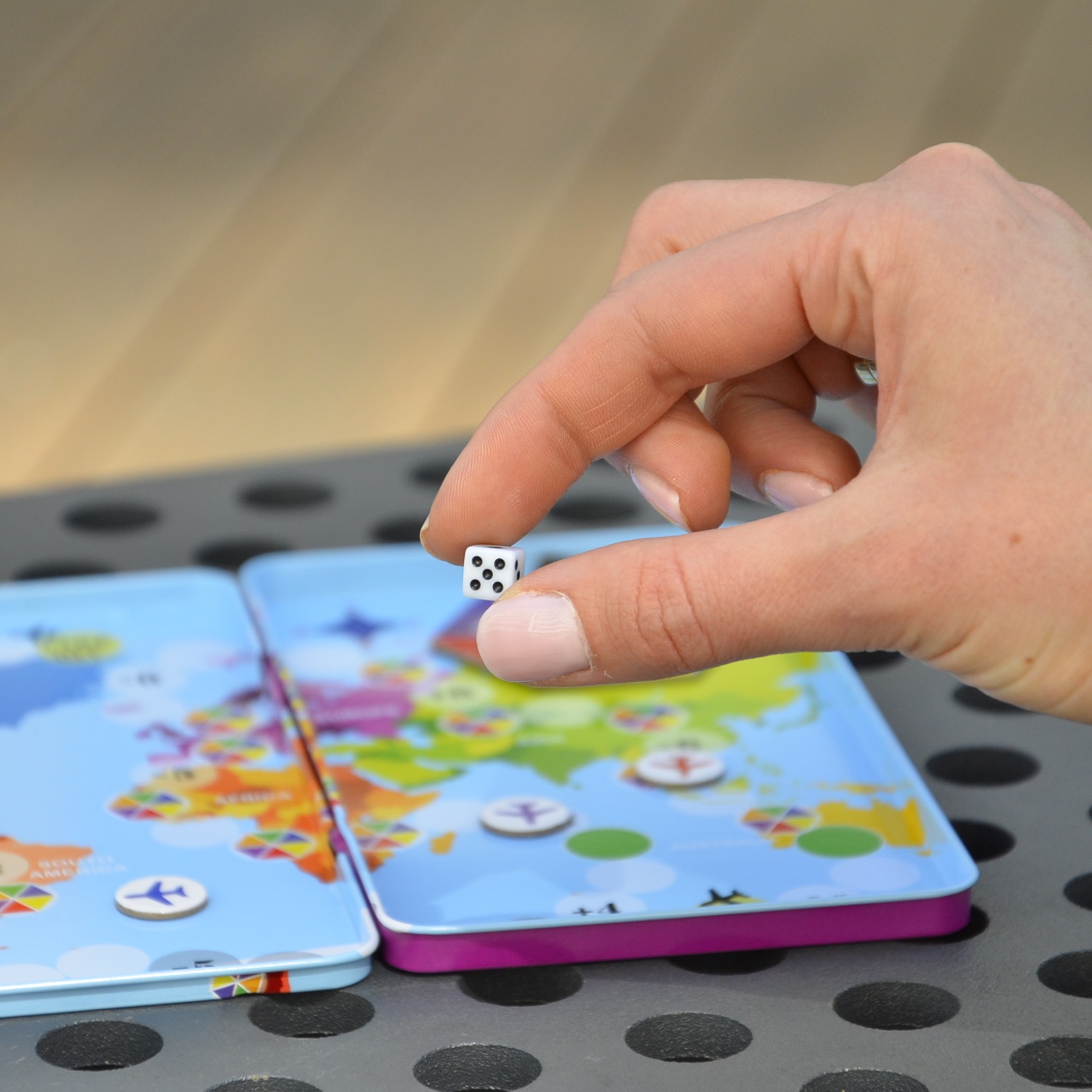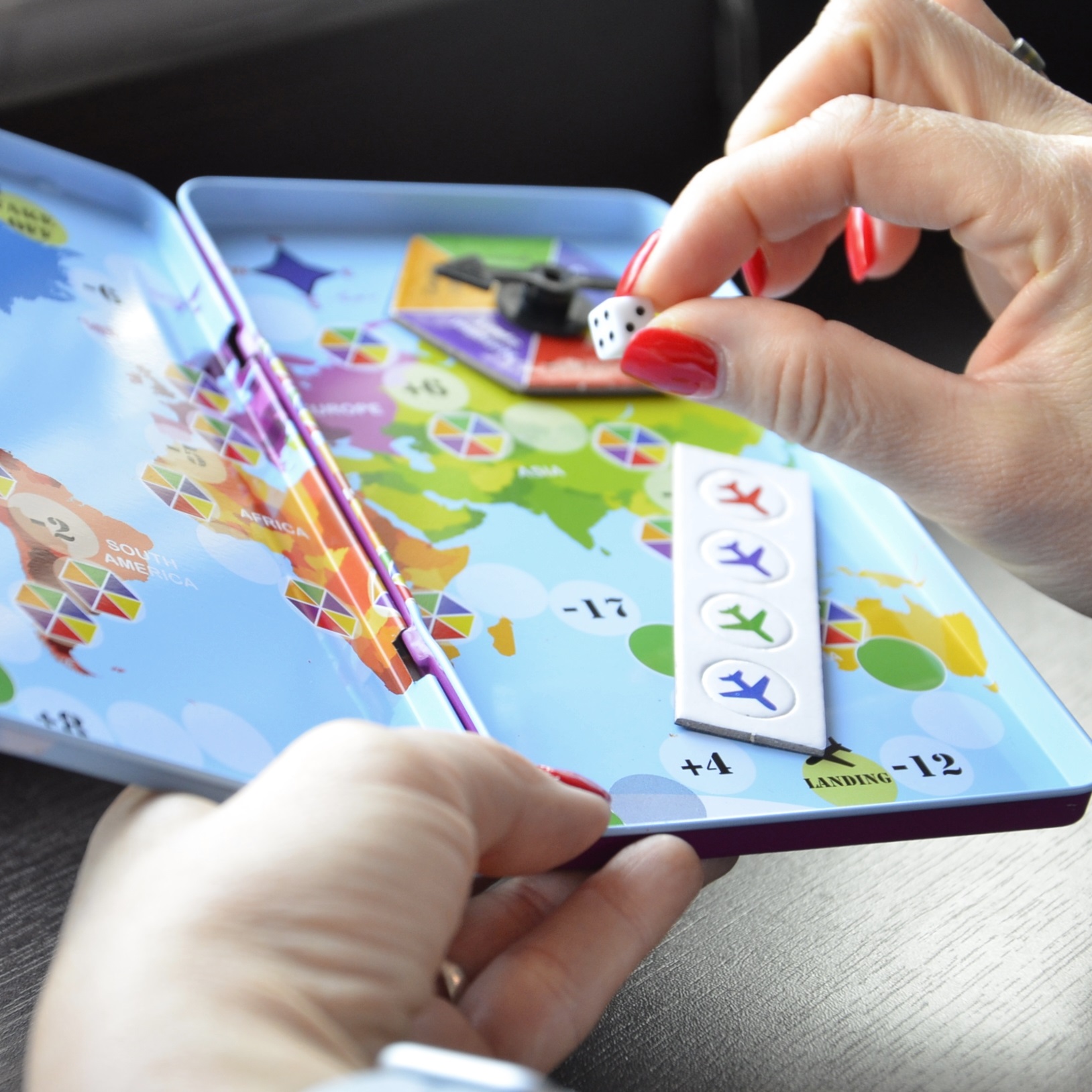 Doskonała gra edukacyjna w kompaktowym formacie to idealne zajęcie na czas podróży. Gra ma praktyczne metalowe opakowanie oraz magnetyczne elementy, zapobiegające gubieniu i przesuwaniu na planszy. Możesz ją w dowolnym momencie zamknąć i po czasie wrócić do zabawy.