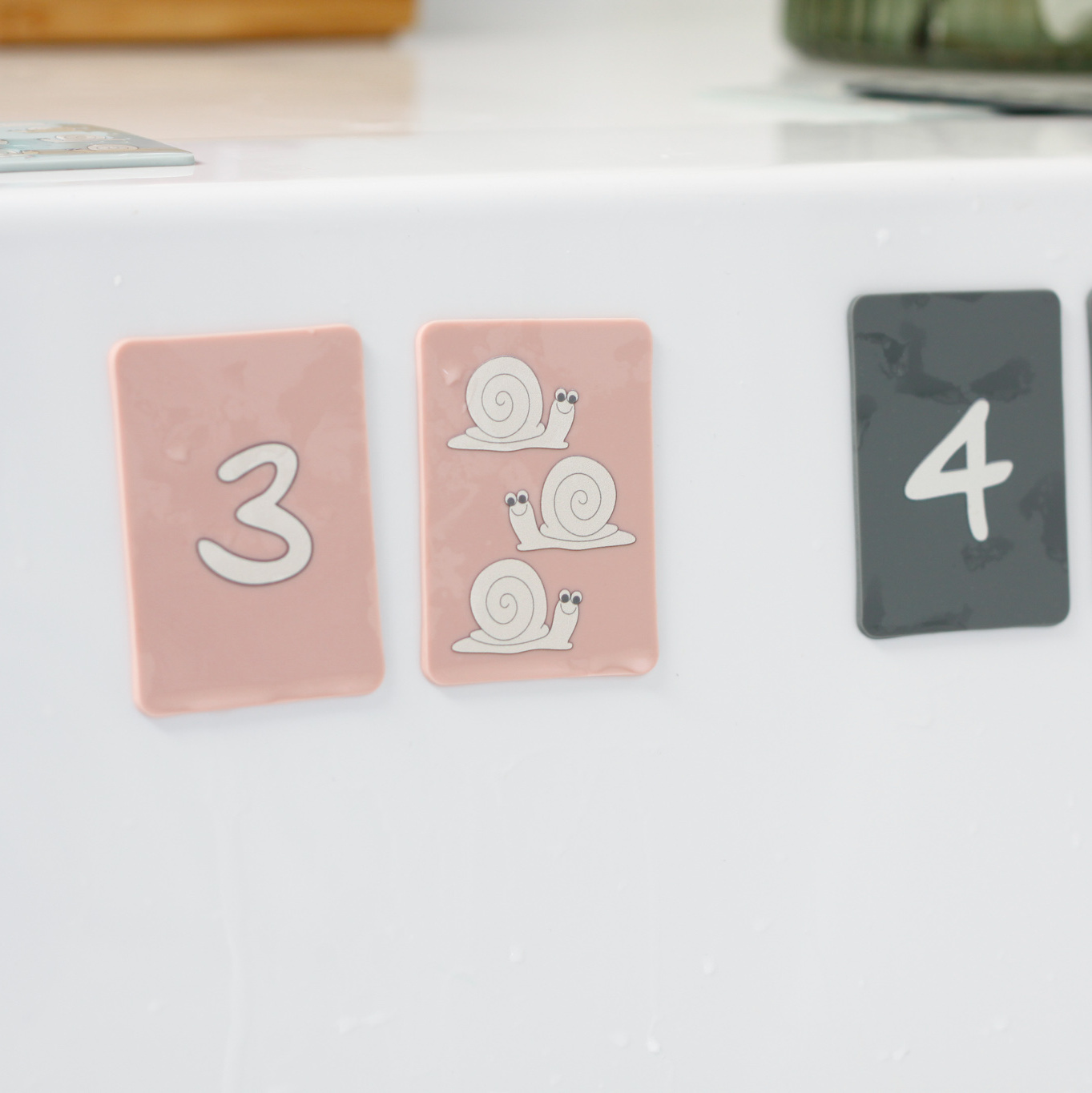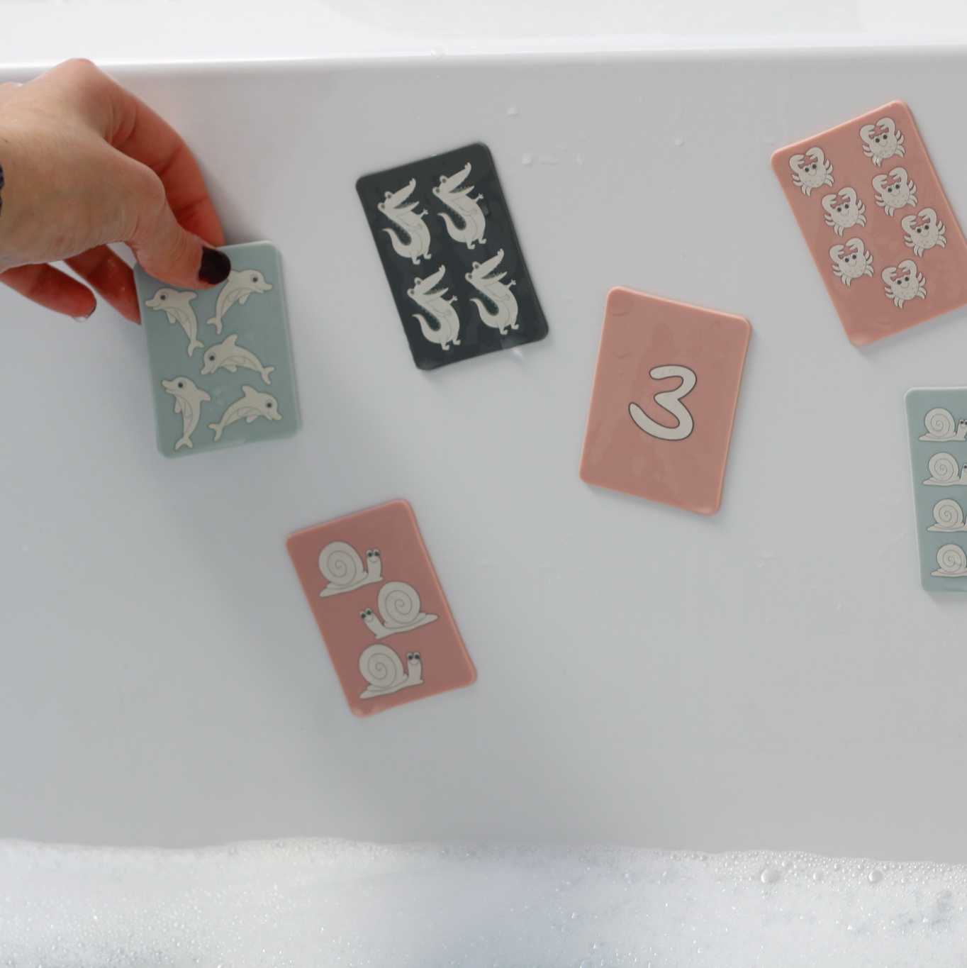 Świetnie sprawdzą się do wprowadzenia dzieci w świat liczb, można je również wykorzystać do gry w memory lub jako puzzle dwuelementowe. Wykonane są z bezpiecznego silikonu, który przykleja się do gładkich, mokrych powierzchni, takich jak wanna czy kafelki.