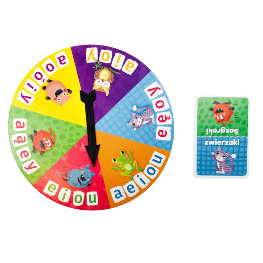 Kto zdobędzie więcej literek - brykające Bazgraki czy urocze zwierzaki? Zakręć kołem i układaj własne słowa z samogłosek i spółgłosek. Czytaj sylaby i dobieraj je w pary, by tworzyć wyrazy.