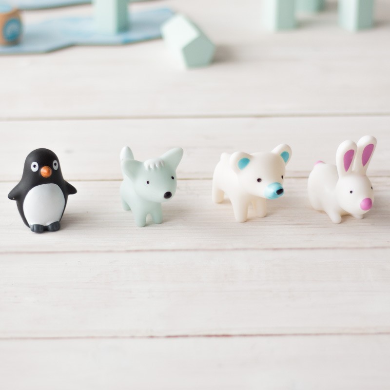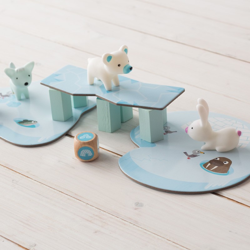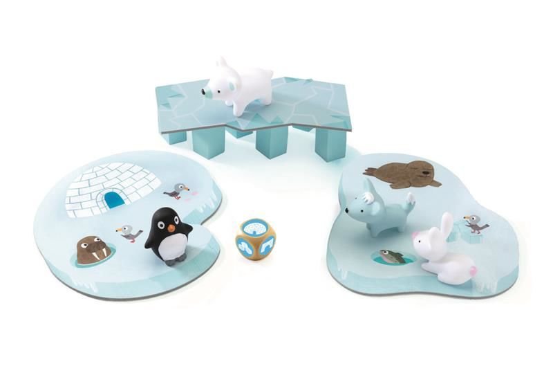 Zawartość: 4 zwierzątka, 3 plansze do gry (1 rozpoczynająca plansza z ‘dziurą rybacką’, 1 lodowy most, 1 docelowa plansza z "igloo") 6 drewnianych mostowych filarów, 1 kostka.