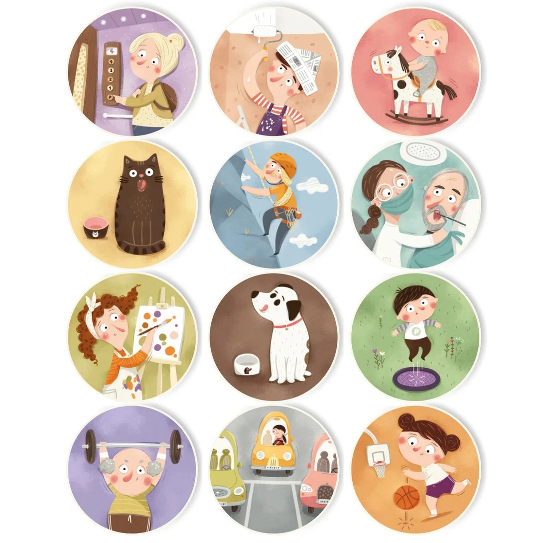 To nie jest zwyczajne memo! Oprócz tradycyjnej gry otrzymujecie zestaw ćwiczeń logopedycznych, tak ważnych dla poprawnej wymowy głosek – do tego w formie fantastycznej zabawy! Na obrazkach zobaczycie Pucia i członków jego rodziny wykonujących różne ciekawe czynności. Zachęcają one do ćwiczeń sprawności języka w zabawny sposób nawiązujących do tego, co widzimy na ilustracjach. W pudełku znajdziecie dokładne instrukcje, jak wykonać każde zadanie, nie przestając ani na chwilę świetnie się przy tym bawić.