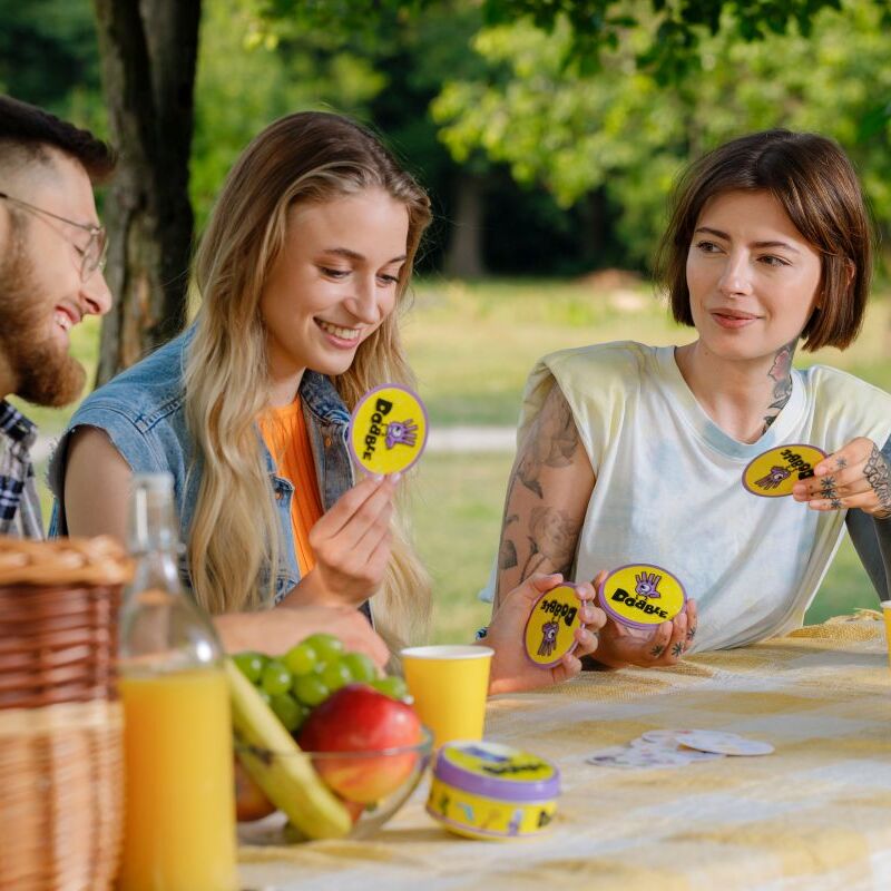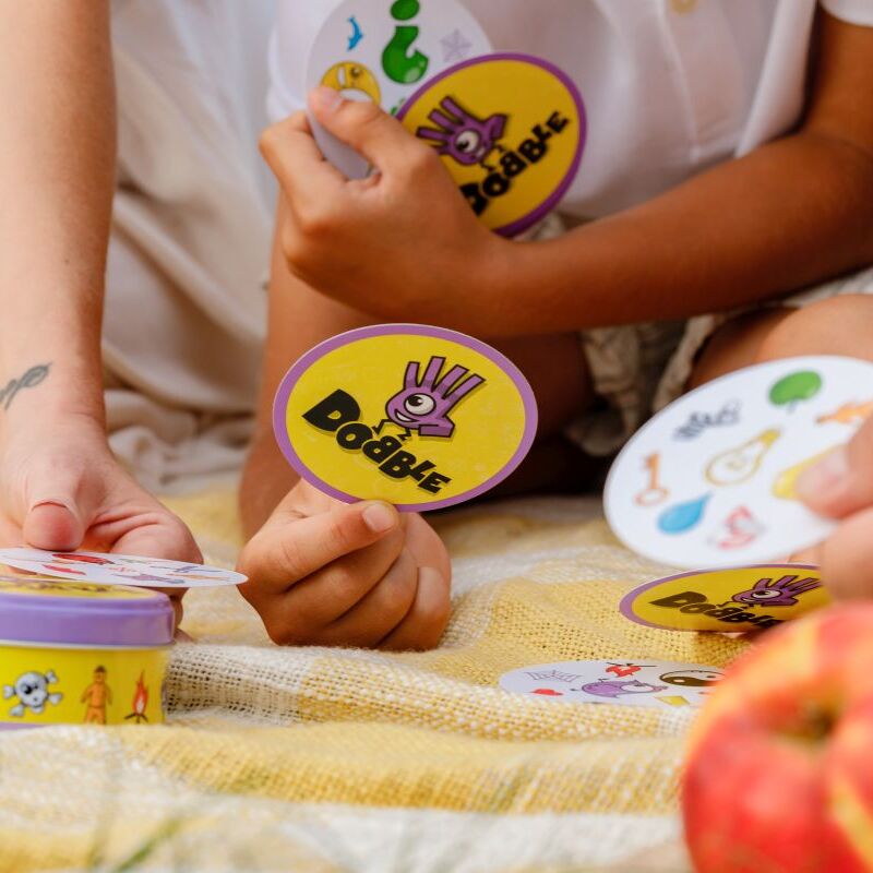 Dobble to rozrywka absolutnie dla każdego - gra nadaje się zarówno do zabawy z dziećmi, jak i na imprezy dorosłych. 55 kolorowych kart zamkniętych jest w solidnej, metalowej puszce, dzięki czemu łatwo zabrać Dobble ze sobą i grać absolutnie wszędzie: w poczekalni u lekarza, w pociągu, na wycieczce…