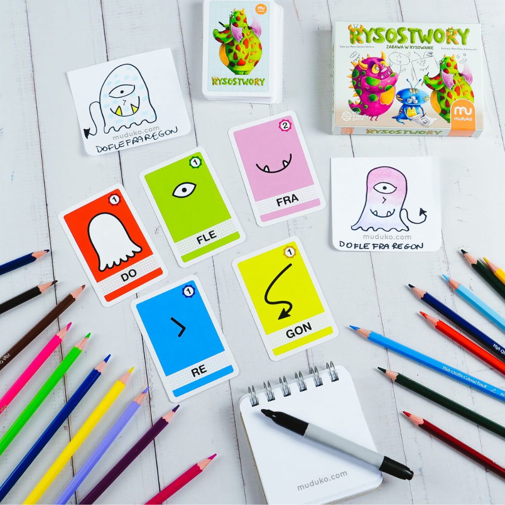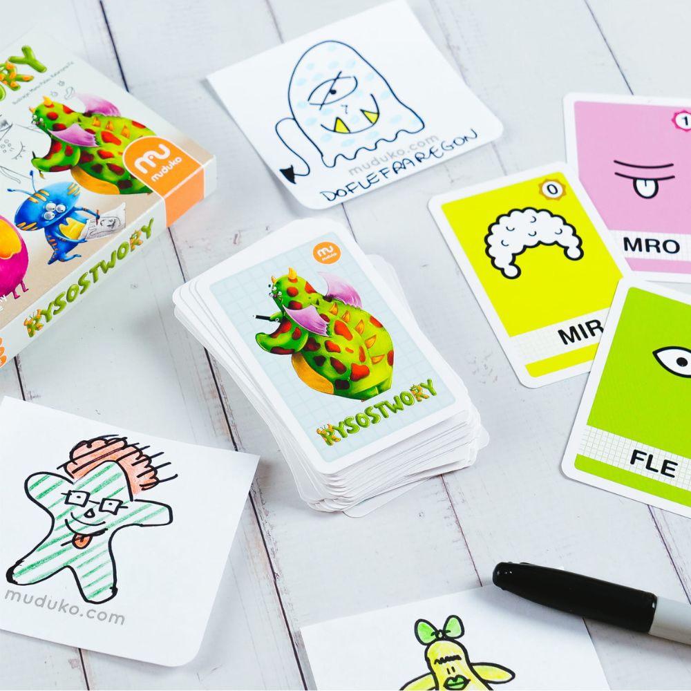 Zabawa, która łączy rysowanie, śmiech i naukę! Gra od Muduko to doskonała propozycja dla dzieci, rodziców, nauczycieli i terapeutów, którzy szukają kreatywnego i wartościowego sposobu na spędzanie czasu. Twoje dziecko stworzy własnego potworka, narysuje go krok po kroku, wymyśli imię, a przy okazji rozwinie motorykę małą, empatię i umiejętność sylabizowania. A to dopiero początek – aż 9 wariantów zabawy sprawia, że ta gra szybko się nie znudzi!