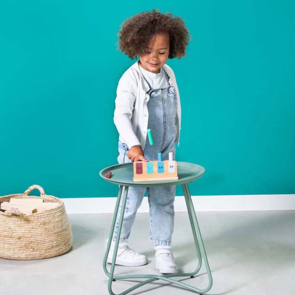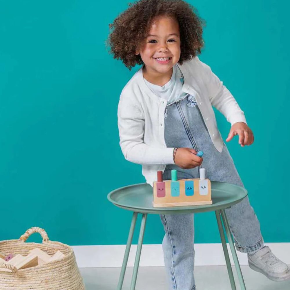 Naturalne drewno, stonowane kolory i sympatyczne buźki sprawiają, że zabawka cieszy oko i pasuje do każdego dziecięcego wnętrza. To idealny pomysł na prezent dla rocznego dziecka oraz wartościowa zabawka edukacyjna, która łączy radość z nauką.