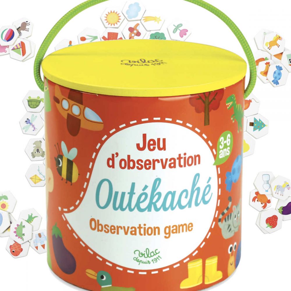 Rewelacyjna gra na spostrzegawczość i szybkość marki Vilac. Pudełko zawiera 100 drewnianych obrazków i 100 kart z obrazkami. Rozkładamy wszystkie obrazki na podłodze i kładziemy odwrócone karty. Dzieci losują kartę i kto pierwszy znajdzie pasujący drewniany obrazek ten dostaje punk. Wygrywa osoba, która uzbiera najwięcej punktów.