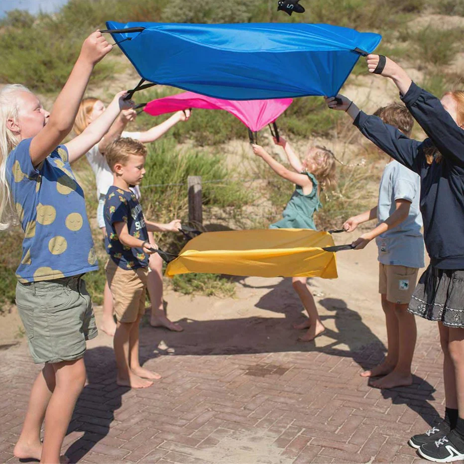Gra 2(6-20 graczy) Stańcie w kole trzymając spadochron. Połóżcie wiewiórkę na środku spadochronu, a potem wszyscy w tym samym czasie wyrzucie je na lewą stronę. Szybko złapcie wiewiórkę nadchodzącą z prawej strony. Po 3 razach zagraj w przeciwnym kierunku. Jeśli nie złapaliście wiewiórki, to odpadacie. Grajcie dalej, aż pojawi się zwycięzca!