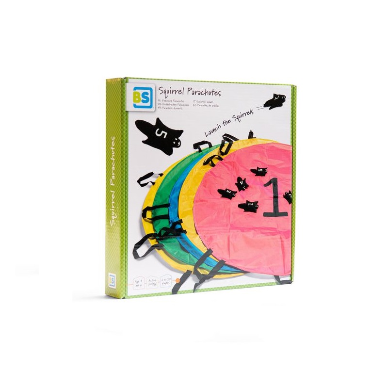 Pomóż wiewiórkom latać, wystrzeliwując je wysoko w powietrze za pomocą kolorowych spadochronów. Przerzuć je z jednego spadochronu na drugi, nie upuszczając żadnej wiewiórki. Policz, ile wiewiórek uda ci się złapać i podlicz swoje punkty! Pomysłowa zabawka do zabawy dla 2 do 20 dzieci! Zawiera instrukcję z zabawnymi odmianami gier.