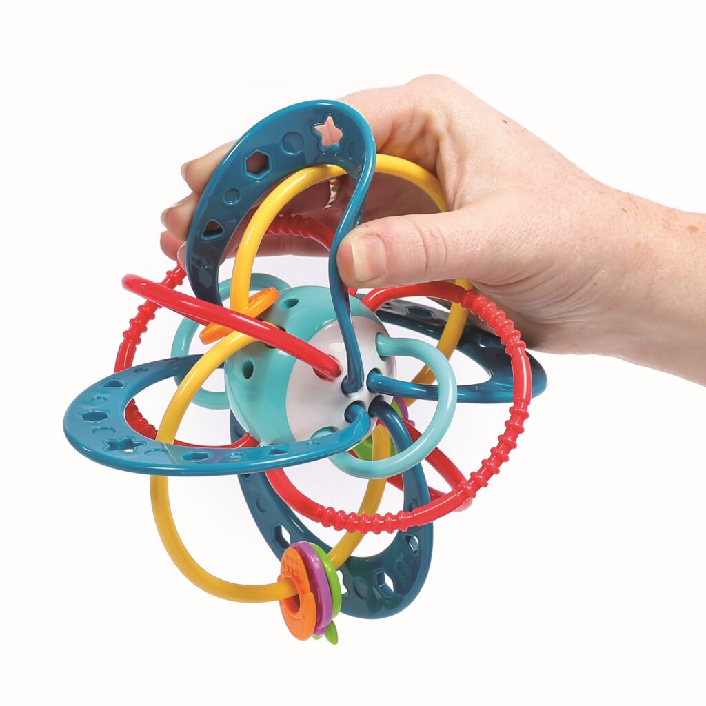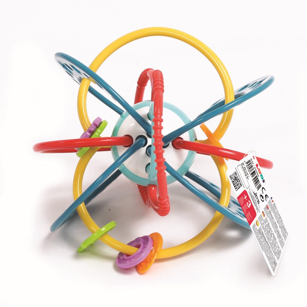 Miękkie i kolorowe obręcze inspirowane pierścieniami planetarnymi są odporne na żucie – zapewnią ulgę dziąsłom ząbkującego maluszka. Dodatkową atrakcję stanowią zróżnicowane kolorowe elementy z wypustkami sensorycznymi, do przesuwania i obracania. Zabawka zaprojektowana z myślą o łatwym chwytaniu i trzymaniu. Dostosowana do małych rączek.