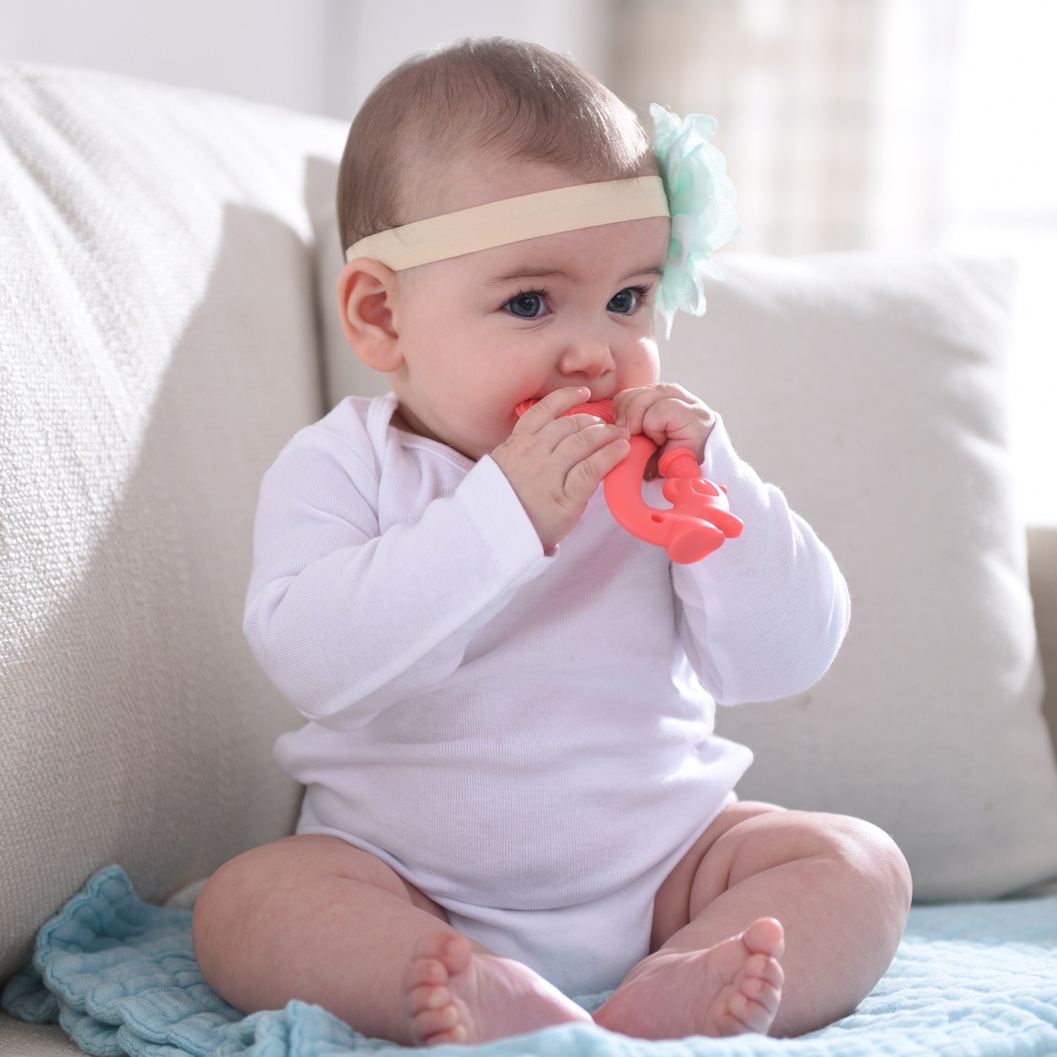 Gryzak solidnie wykonany, bezpieczny, łatwy w utrzymaniu czystości i pozwala dziecku choć na chwilę zapomnieć o bolących dziąsełkach. Fajnie się wygina i pomaga ćwiczyć małe rączki. I ja i synek jesteśmy zadowoleni :)