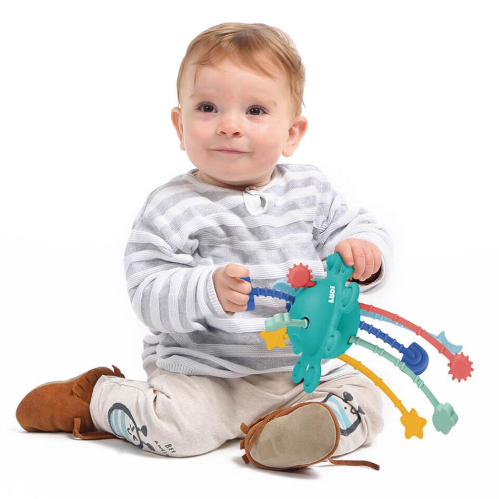 Zippy to wielofunkcyjna zabawka sensoryczna zaprojektowana z myślą o najmłodszych dzieciach już od 10. miesiąca życia. Zachęca do aktywnego odkrywania świata poprzez pociąganie, wciskanie i powtarzanie ruchów – dokładnie tak, jak lubią to robić małe rączki. To doskonały wybór dla rodziców szukających zabawki, która nie tylko zajmie dziecko, ale realnie wesprze jego rozwój.