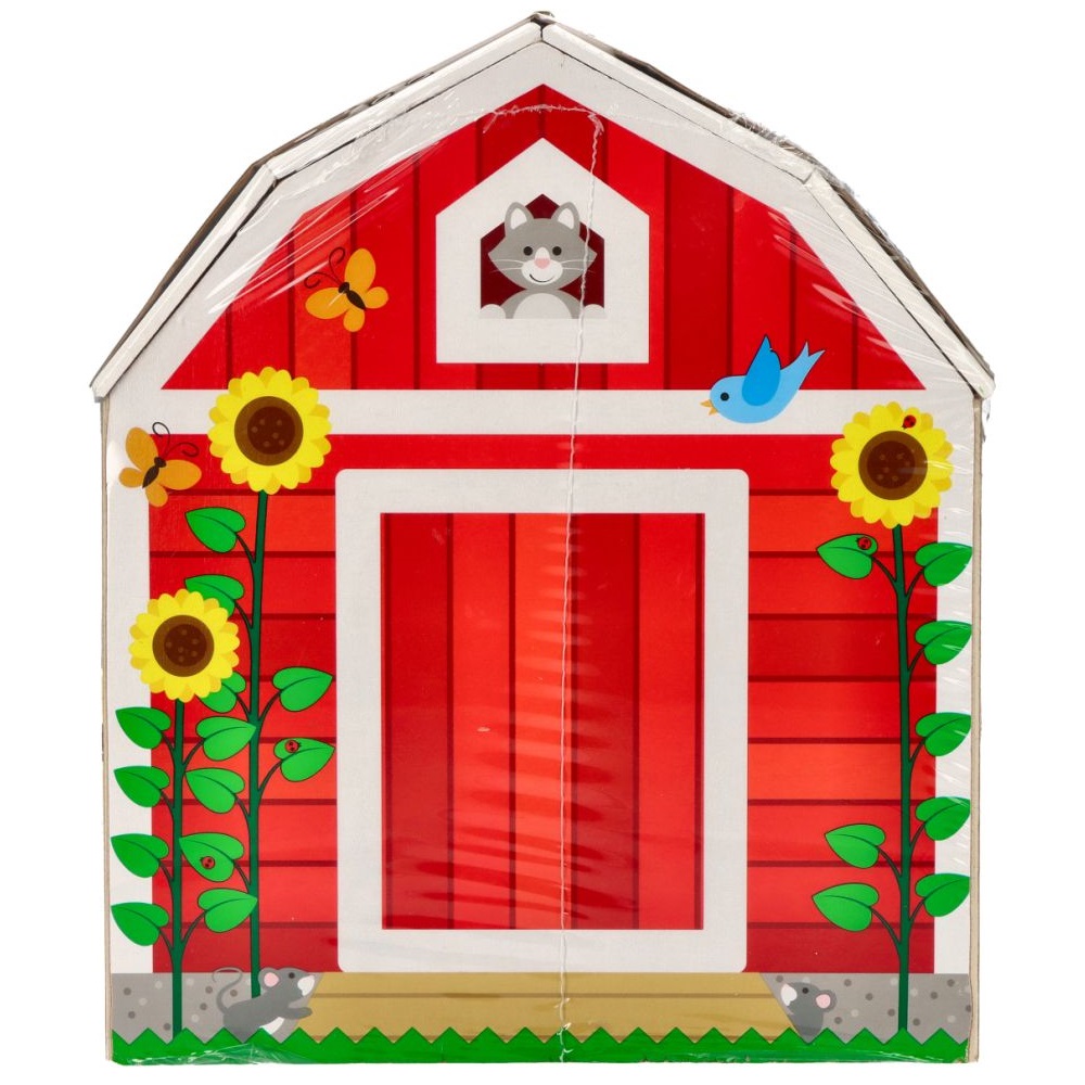 Otwórz drzwiczki i zajrzyj do środka, jakie zwierzątka mieszkają w Twojej mini stodole? Drewniana stodoła została pięknie pomalowana i ozdobiona w środku jak i na zewnątrz. Pudełko posiada 5 drzwiczek zamykanych na różne zawiasy. Na drzwiach namalowano zwierzątka zamieszkujące farmę. Do zestawu dołączono figurkę: kozy, konia, świnki oraz krówki. Zabawka zachęca do twórczej zabawy.