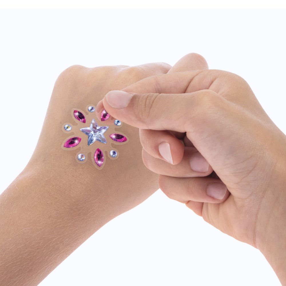 Wprowadź do zabawy odrobinę ciepła i magii z tatuażami Isadory! Różowe i złote akcenty sprawiają, że każdy wzór lśni jak bajkowa biżuteria. To idealny wybór dla dzieci, które kochają blask, elegancję i wyraziste kolory.