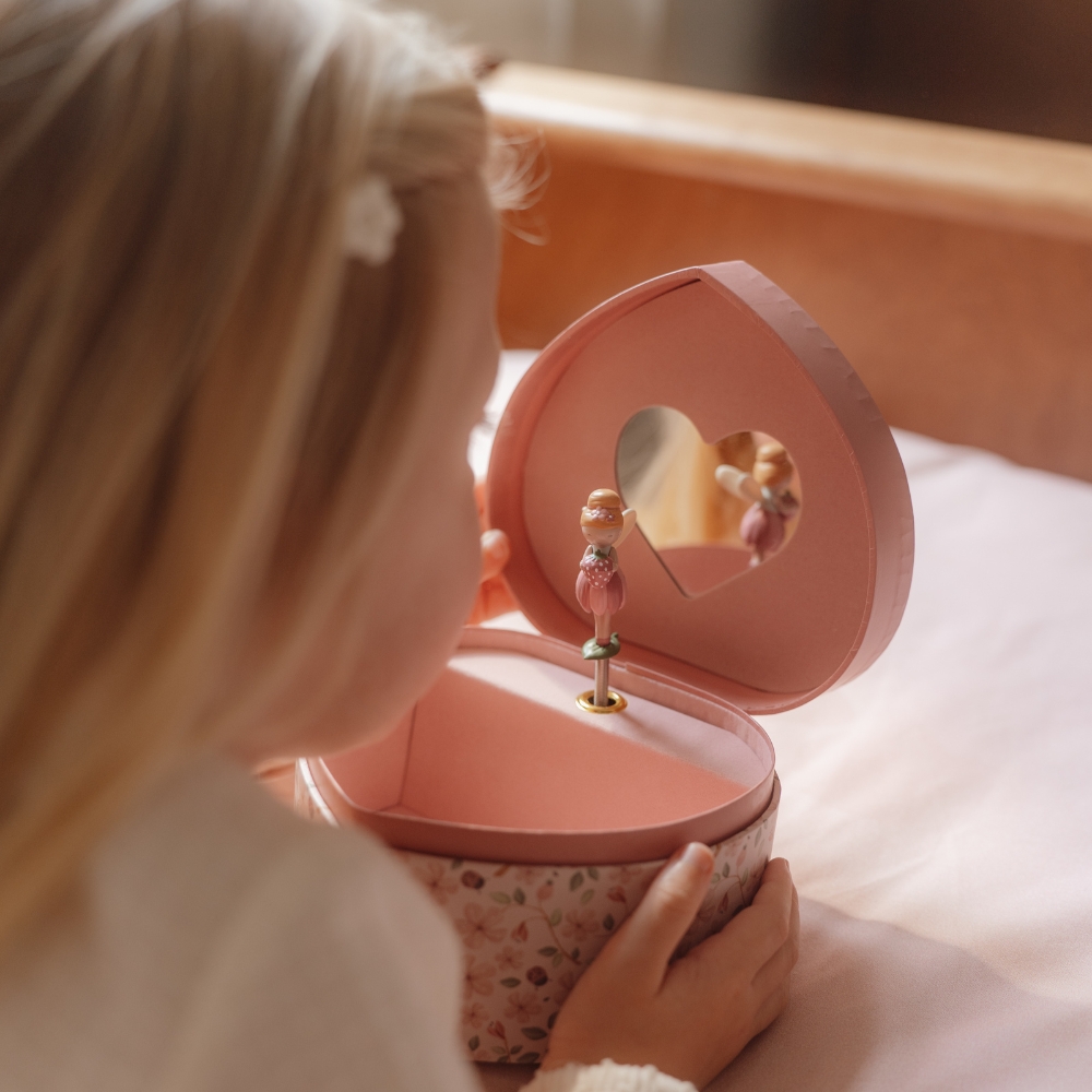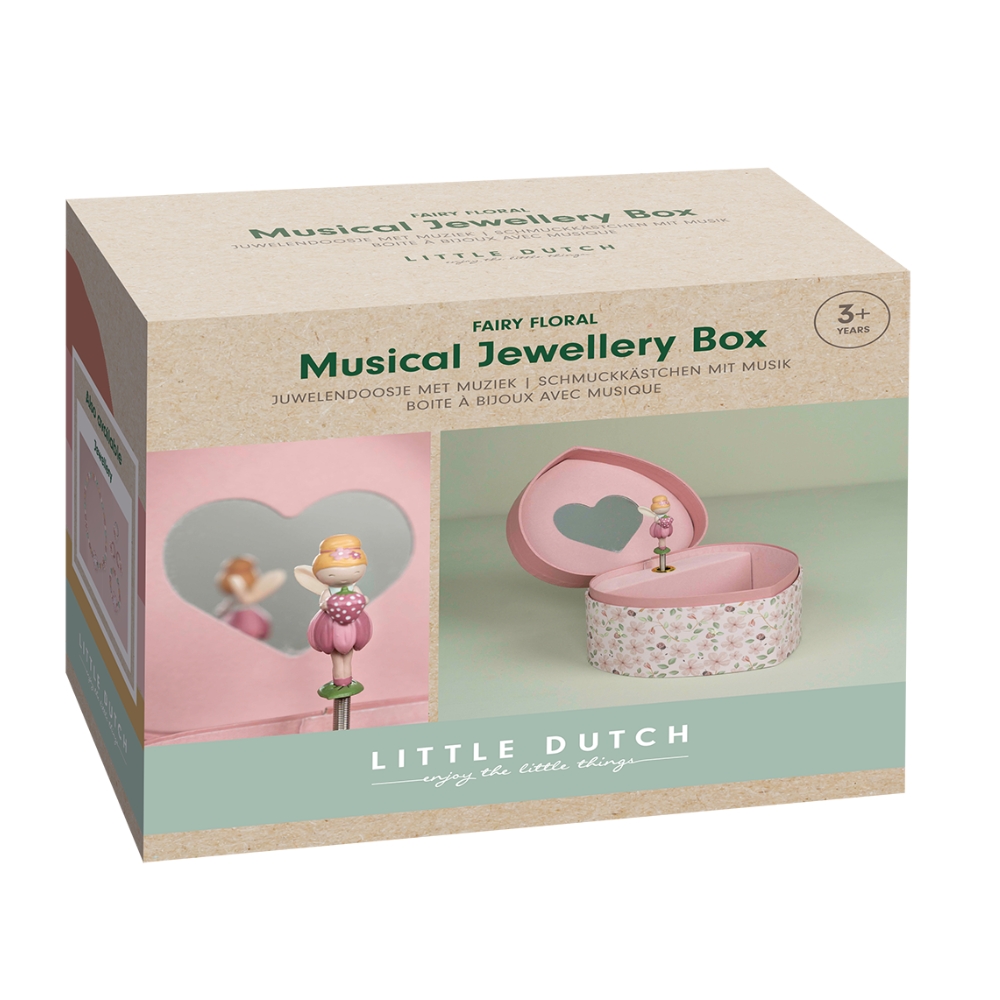 Szkatułka z pozytywką Wróżka od Little Dutch przeniesie dziecko w uroczy świat magii! Po nakręceniu pozytywki i podniesieniu wieczka, delikatna wróżka zaczyna tańczyć przed lusterkiem w rytm kojącej melodii. To niezwykle uroczy i nostalgiczny przedmiot, który zachwyci każde dziecko. Szkatułka pomieści wszystkie najcenniejsze drobiazgi - bransoletki, pierścionki czy sekrety małej damy.