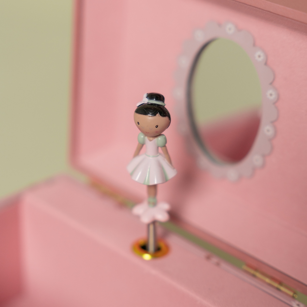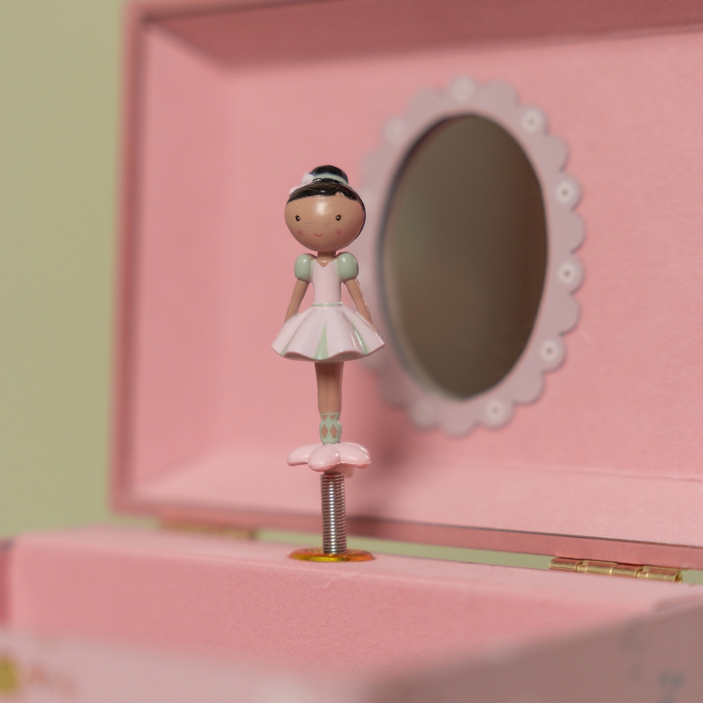 Otwórz magiczne pudełeczko i pozwól, by Rosa zatańczyła przed lusterkiem w rytm delikatnej melodii! Szkatułka z pozytywką Evi od Little Dutch to wyjątkowy dodatek do pokoju każdej małej dziewczynki. Idealna do przechowywania dziecięcych skarbów, biżuterii czy małych pamiątek, stanie się piękną ozdobą wnętrza i źródłem codziennej radości. Nie wymaga baterii - wystarczy nakręcić kluczyk z tyłu, by baletnica ożyła i roztańczyła się przed uroczym lusterkiem w kształcie kwiatuszka.
