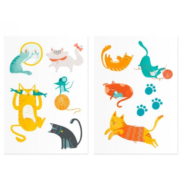 Lekko zwariowane, zmywalne tatuaże zostały opakowane w prezentowy kartonik w kształcie sympatycznego Kota. Do wyboru 10 wzorów z kotkami w roli głównej. Tatuaże to super zabawa i sprawdzona atrakcja dziecięcych przyjęć i spotkań towarzyskich!