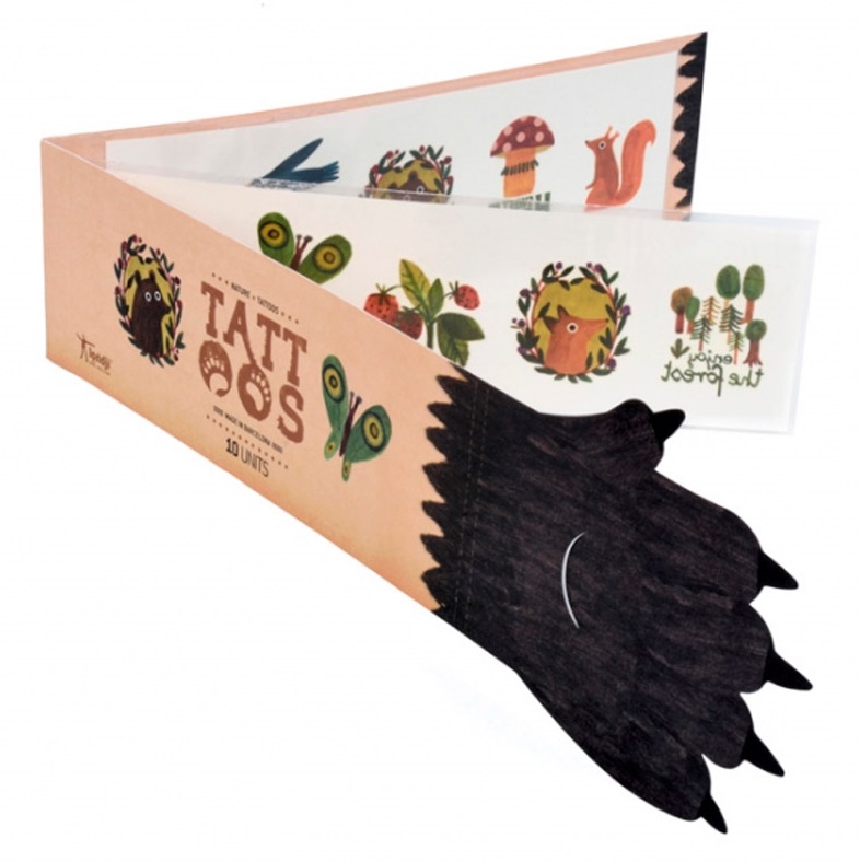 Bajkowe tatuaże przyklejane za pomocą wody, w pełni bezpieczne, nietoksyczne. W zestawie jest ich 10 sztuk, uwagę przyciąga niesamowita grafika, nieco zwariowana, czasem w stylu vintage. Bardzo szybko przyklejają się do skóry po lekkim zwilżeniu wodą :) Zmywane są również za pomocą wody. Dzięki niestandardowemu opakowaniu tatuaże to gotowy prezent na dziecięce spotkanie, urodziny czy przyjęcie. Arkusze z tatuażami są w środku w foli, która może służyć do przechowywania pozostałych, nie użytych jeszcze obrazków.
