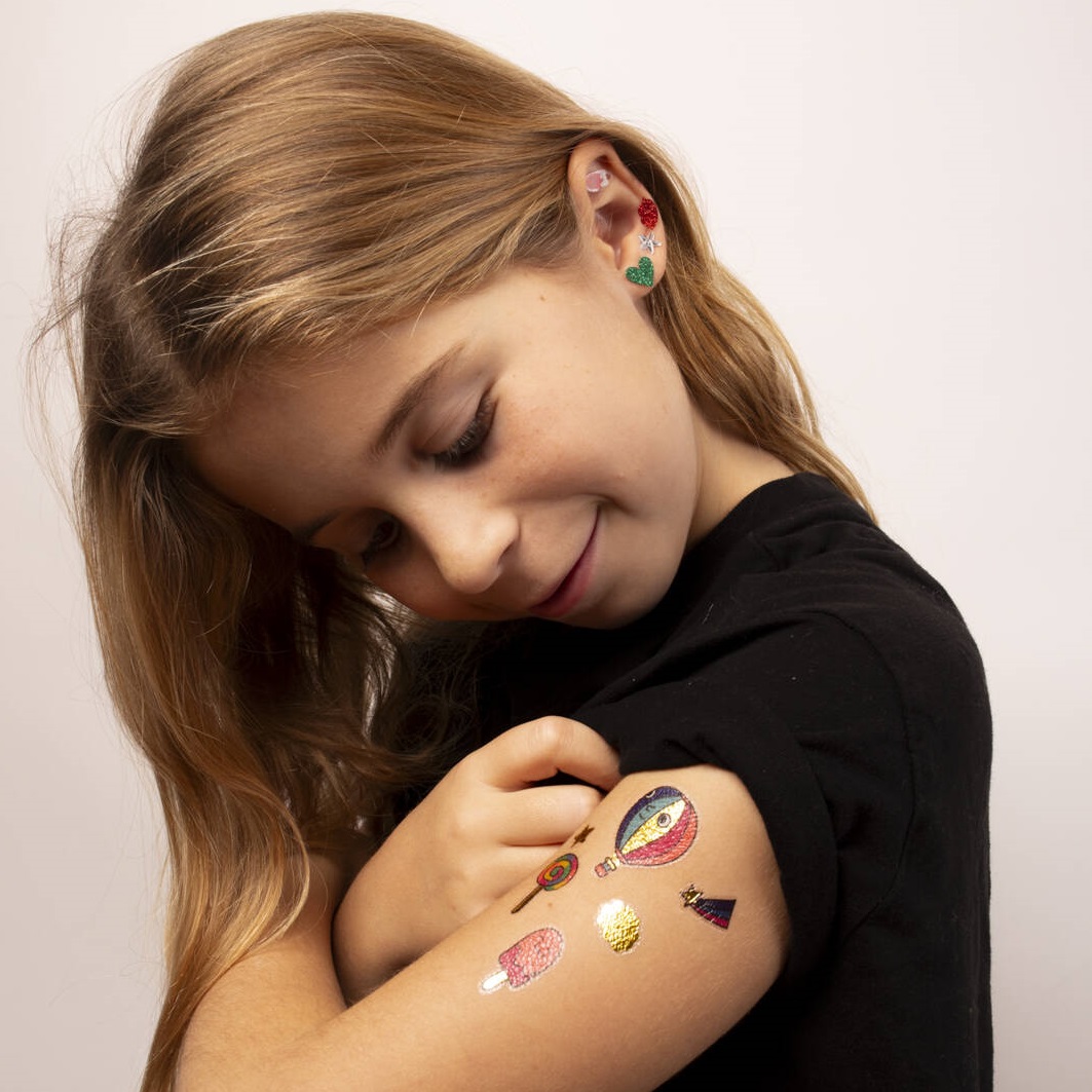 Tatuaże dla małego fana dinozaurów! W tym uroczym opakowaniu znajdziecie aż 50 fluorescencyjnych, złotych i kolorowych zmywalnych tatuaży, które możecie przyklejać na całym ciele. Tatuaże są łatwe w użyciu, trwałe i przetestowane dermatologicznie.
