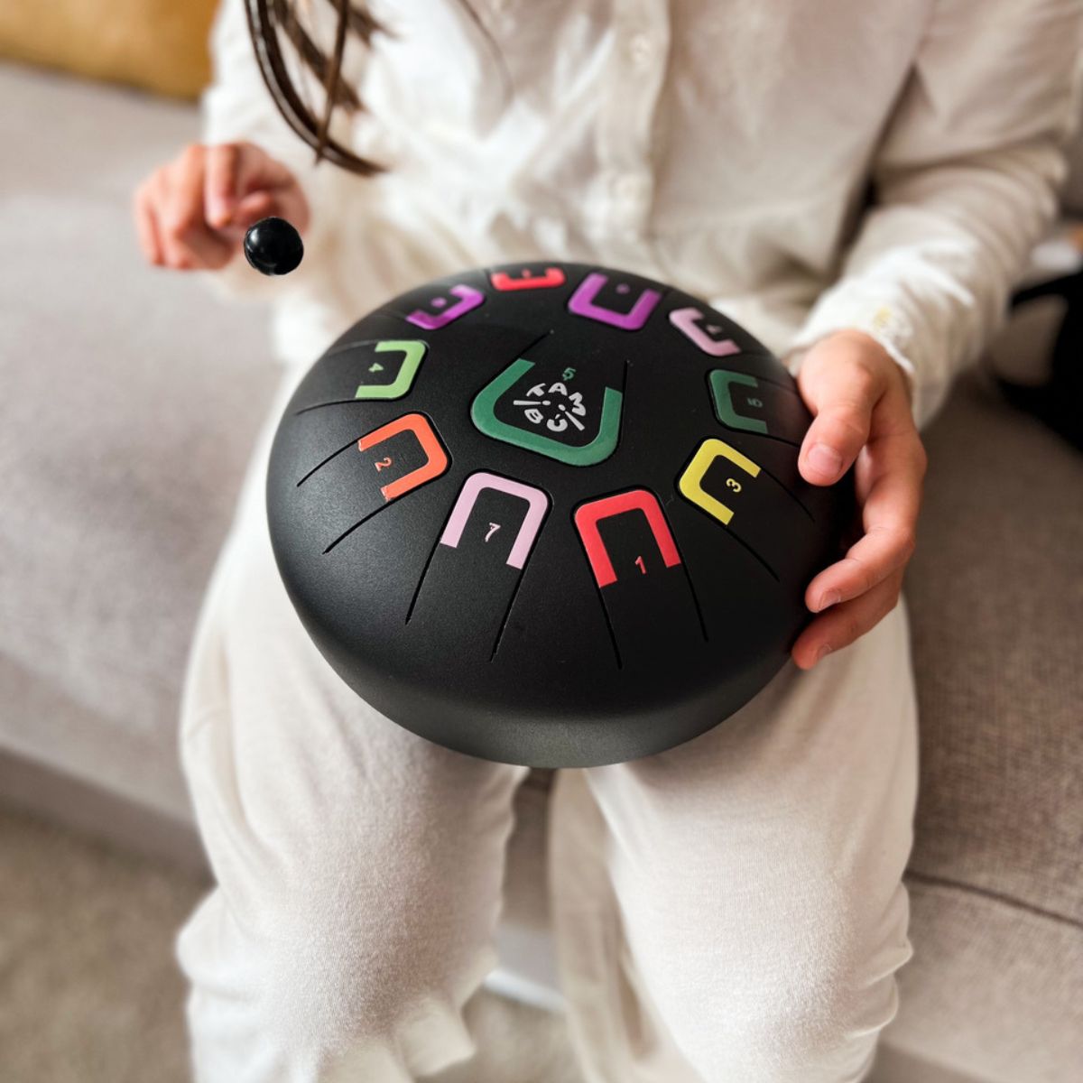 Tambu to rodzaj melodycznego bębenka językowego, który wprowadzi Cię w pasjonujący świat zabawy dźwiękami. Tambu jest kompaktowym, okrągłym, 8 calowym (20 cm), stalowym bębenkiem, który skrywa aż 11 tonów. Cały wszechświat melodii masz na wyciągnięcie ręki. Daj się zaskoczyć jego aksamitnemu i relaksującemu brzmieniu i wyzwól u dziecka lub u siebie talent artystyczny!