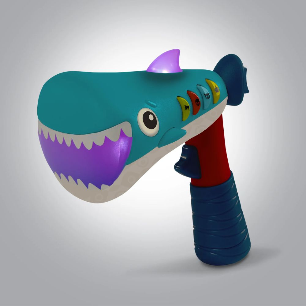 Efekty głosowe (robot, potwór, kosmita oraz tryb klasycznego megafonu) w połączeniu z dwoma wysokościami tonu dają aż 7 kombinacji dźwięków. Każde naciśnięcie przycisku to nowa rola i nowy pomysł na zabawę. Dodatkową atrakcją są dynamiczne światła LED w pysku i płetwie rekina, które migają w rytm mówienia, potęgując efekt „małego show”.