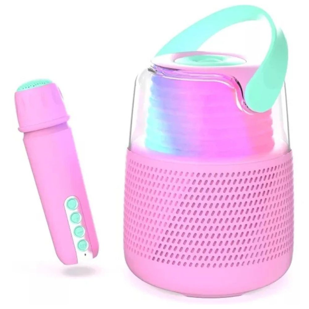 Zestaw do karaoke mikrofon i głośnik z podświetleniem LED MOB w wersji: różowy