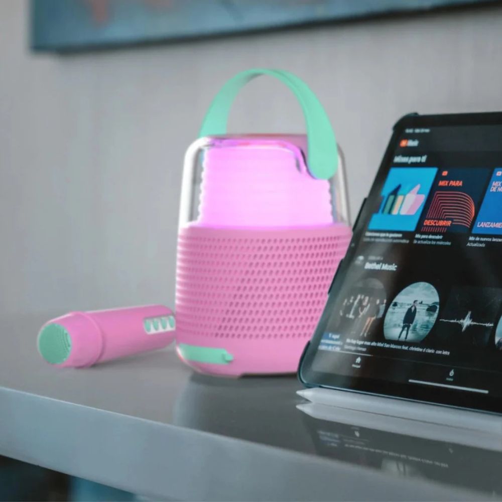 Bezprzewodowy głośnik umożliwia łatwe strumieniowanie muzyki z telefonu, tabletu lub innego kompatybilnego urządzenia. Do zestawu dołączony jest bezprzewodowy mikrofon z kolorowym podświetleniem LED i zabawnymi efektami dźwiękowymi – możesz zmienić głos na niski, wysoki lub dziecięcy i dodać występom humorystycznego charakteru. To gwarancja śmiechu, radości i niezapomnianych chwil, bez względu na wiek uczestników.