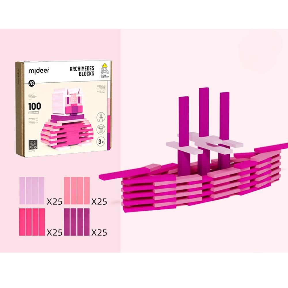 Drewniane klocki Archimedes mideer w wersji: Odcienie różu 100 el.