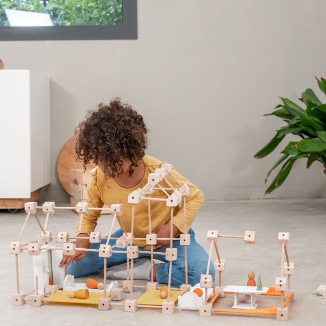 Buduj konstrukcje i geometryczne kształty łącząc drewniane elementy! Trigonos to zestawy drewnianych i materiałowych elementów konstrukcyjnych w skład, których wchodzą: patyki, klocki i tkaniny, które można łatwo ze sobą łączyć i tworzyć z nich niepowtarzalne budowle. Zestawy trigonos są odpowiednie dla dzieci od 4 roku życia.