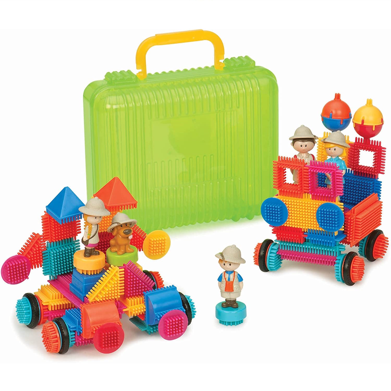 Klocki jeżyki w walizce Bristle Blocks Battat w wersji: Safari z figurkami 85 elementów