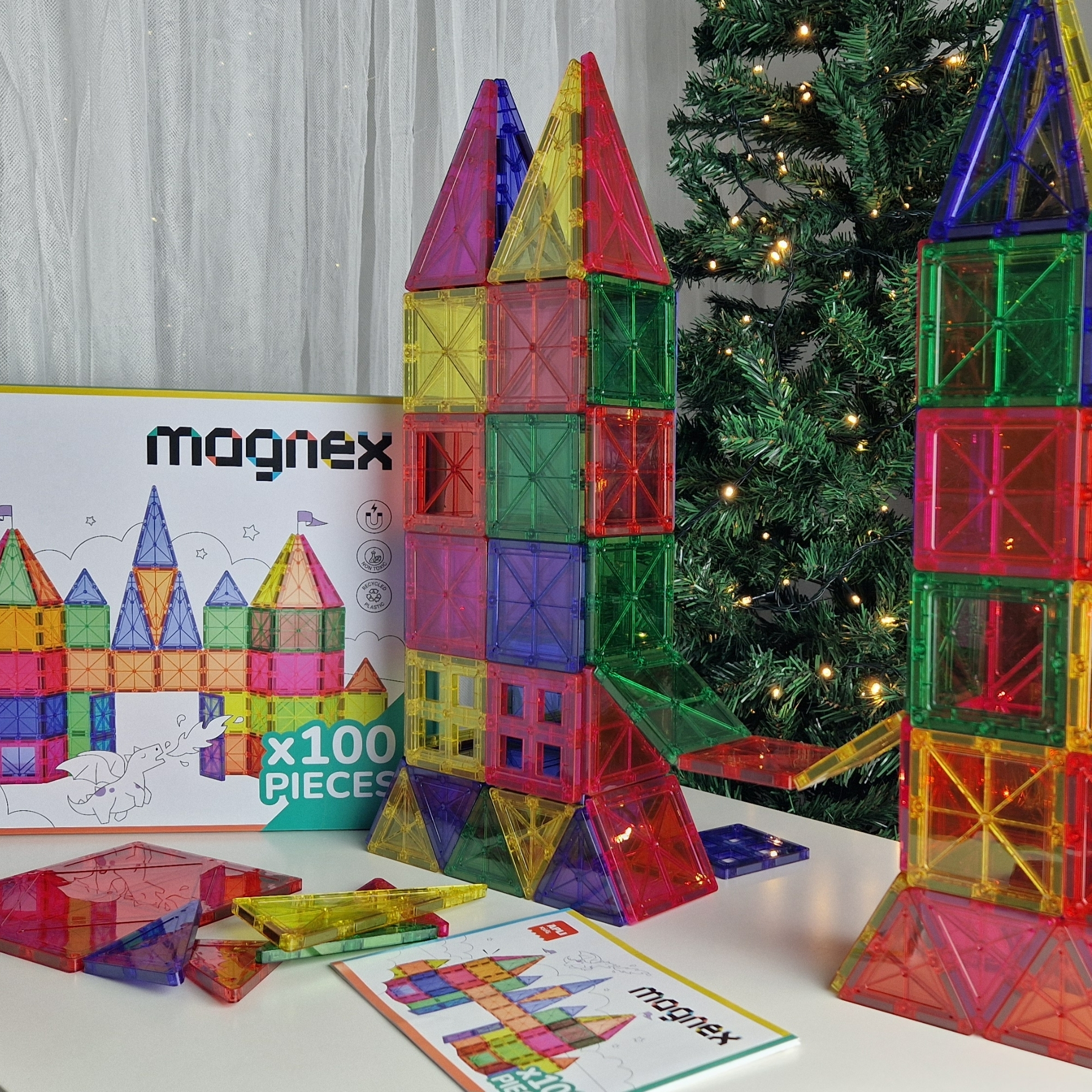Zestaw zawiera 60 kolorowych, magnetycznych elementów w różnych kształtach i rozmiarach, które umożliwiają tworzenie trójwymiarowych struktur. Co istotne – wszystkie zestawy Magnax można ze sobą łączyć, co pozwala na stopniowe powiększanie kolekcji i budowanie coraz bardziej skomplikowanych modeli.