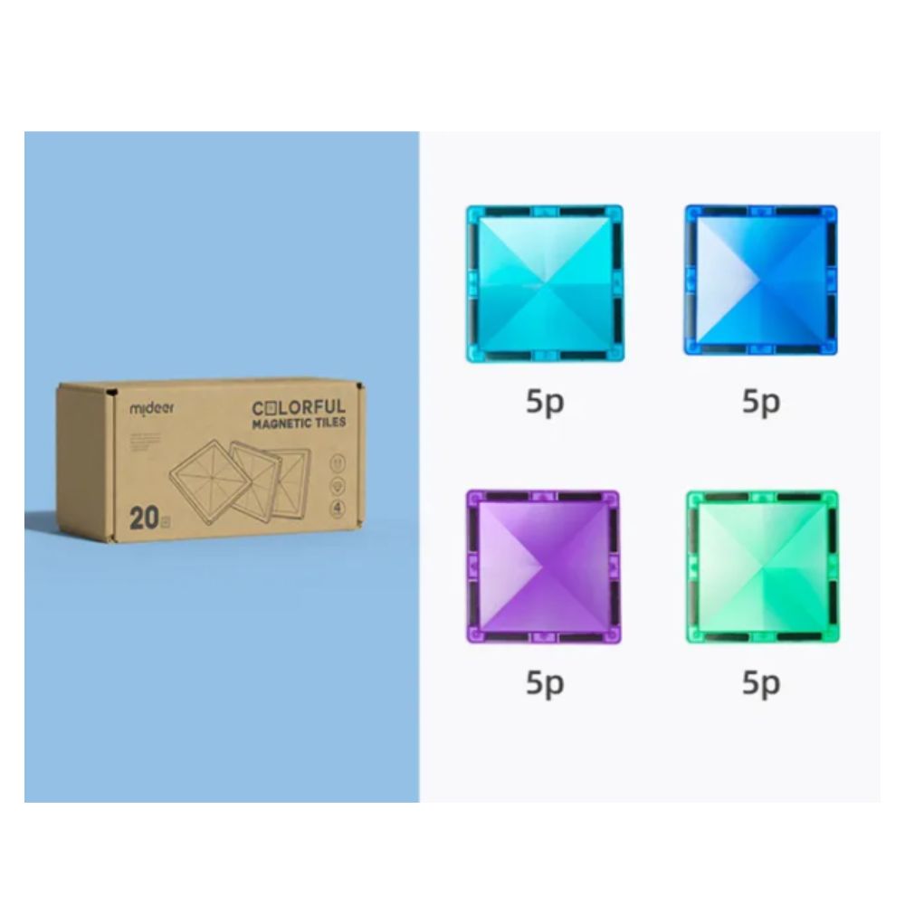 Cechy klocków magnetycznych mideer - Gama chłodna kwadraty 20 el.: