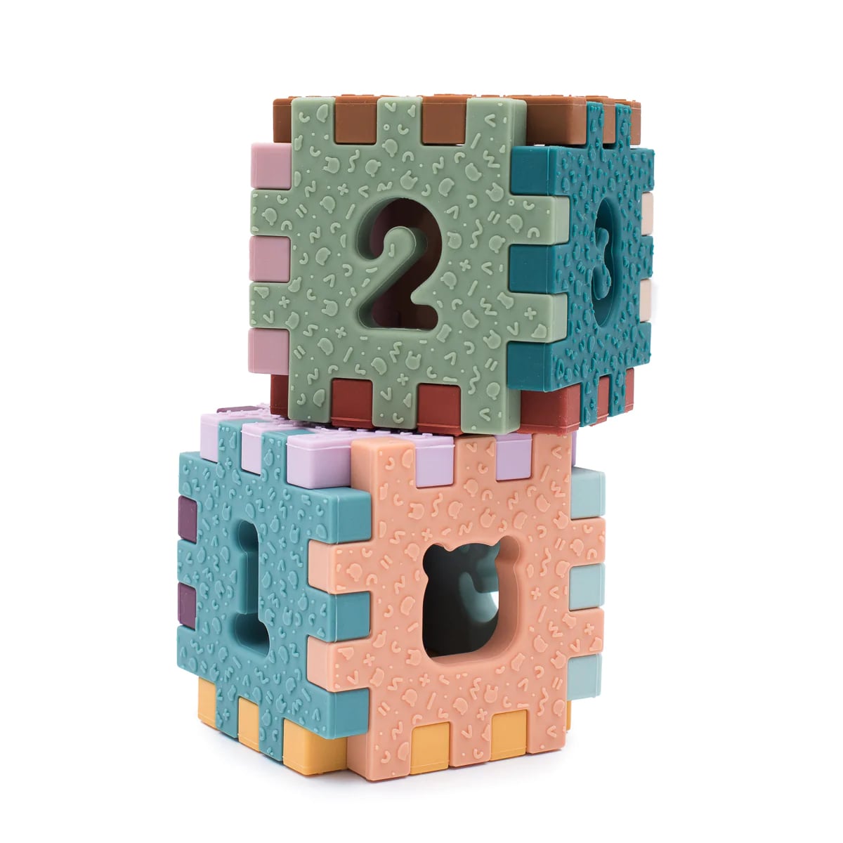 Klocki Cube We Might Be Tiny to wielofunkcyjna zabawka przeznaczona dla dzieci na różnym etapie rozwoju. Materiał, z którego zostały wykonane to bezpieczny silikon spożywczy. Można je wykorzystać w 4 wariantach: jako klasyczne klocki do układania, puzzle, gryzaczek dla najmłodszych oraz zabawkę sensoryczną. Cubie zawiera 6 elementów, na których widnieją cyfry 1,2 i 3 oraz wypukłe kształty misia, króliczka i kota. Doskonale sprawdzą się jako zabawka sensoryczna i pobudzą zmysły dziecka. Bez względu na wiek silikonowe klocki zapewnią wspaniałą rozrywkę wszystkim maluchom. Połącz ze sobą dwa zestawy, aby tworzyć jeszcze bardziej imponujące konstrukcje!