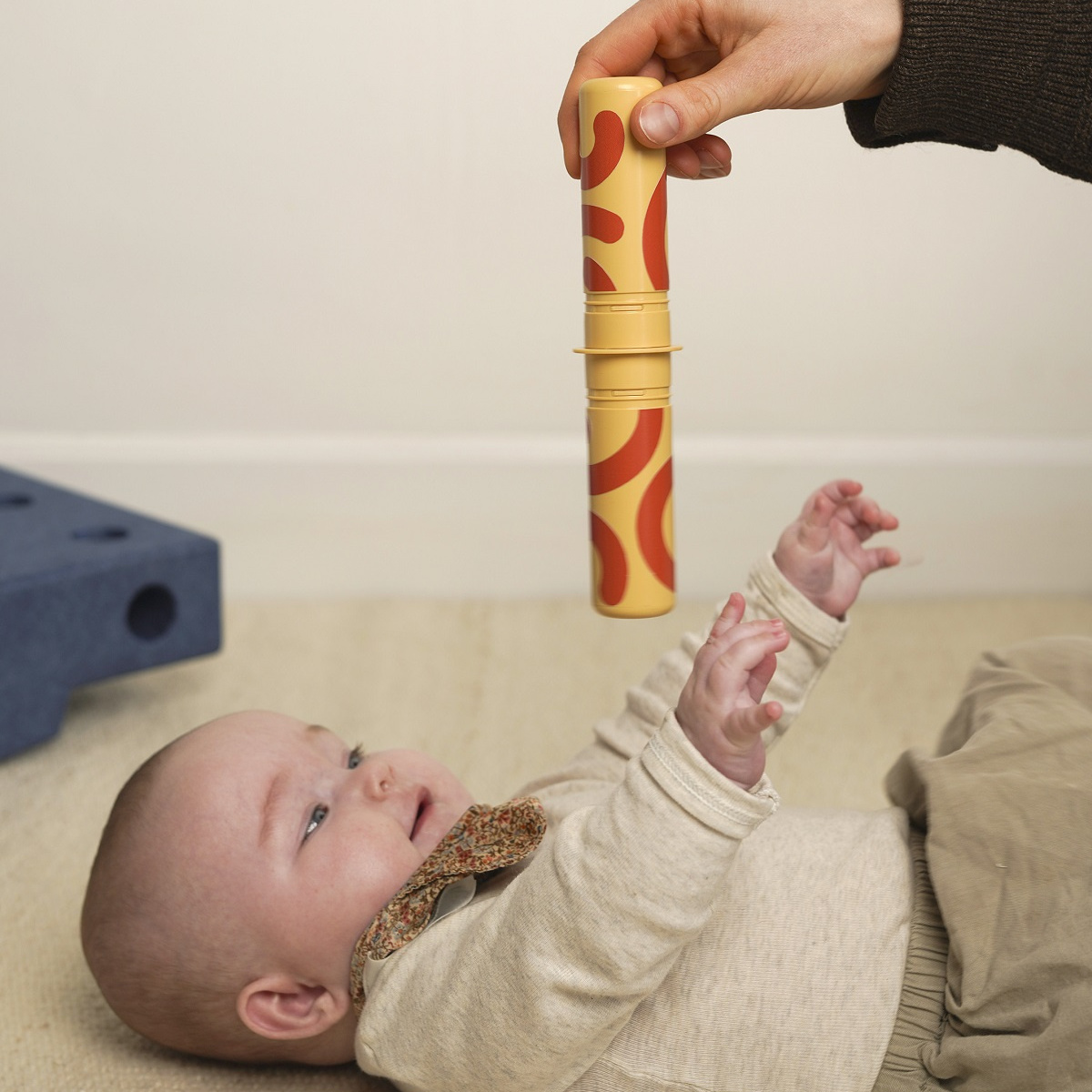 W zestawie poza sensorycznym blokiem piankowym, dzięki któremu maluszek może się położyć, chwiać, przechylać i kołysać znajdują się kolorowe grzechotki z ciekawymi wzorami i dźwiękami, zapewniającymi stymulację wizualną i sensoryczną - to idealny duet, który gwarantuje ciekawą, kreatywną i pobudzającą zmysły dziecka zabawę.