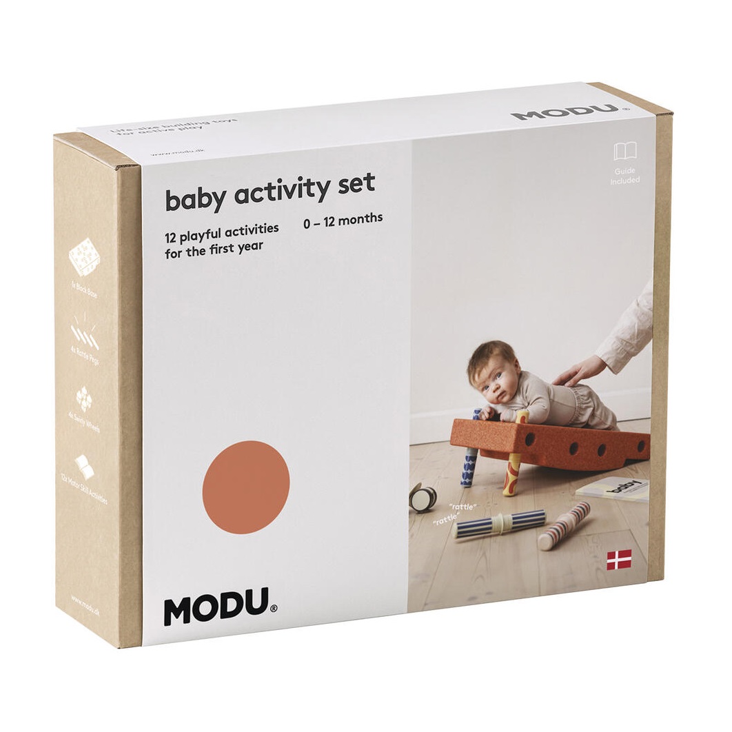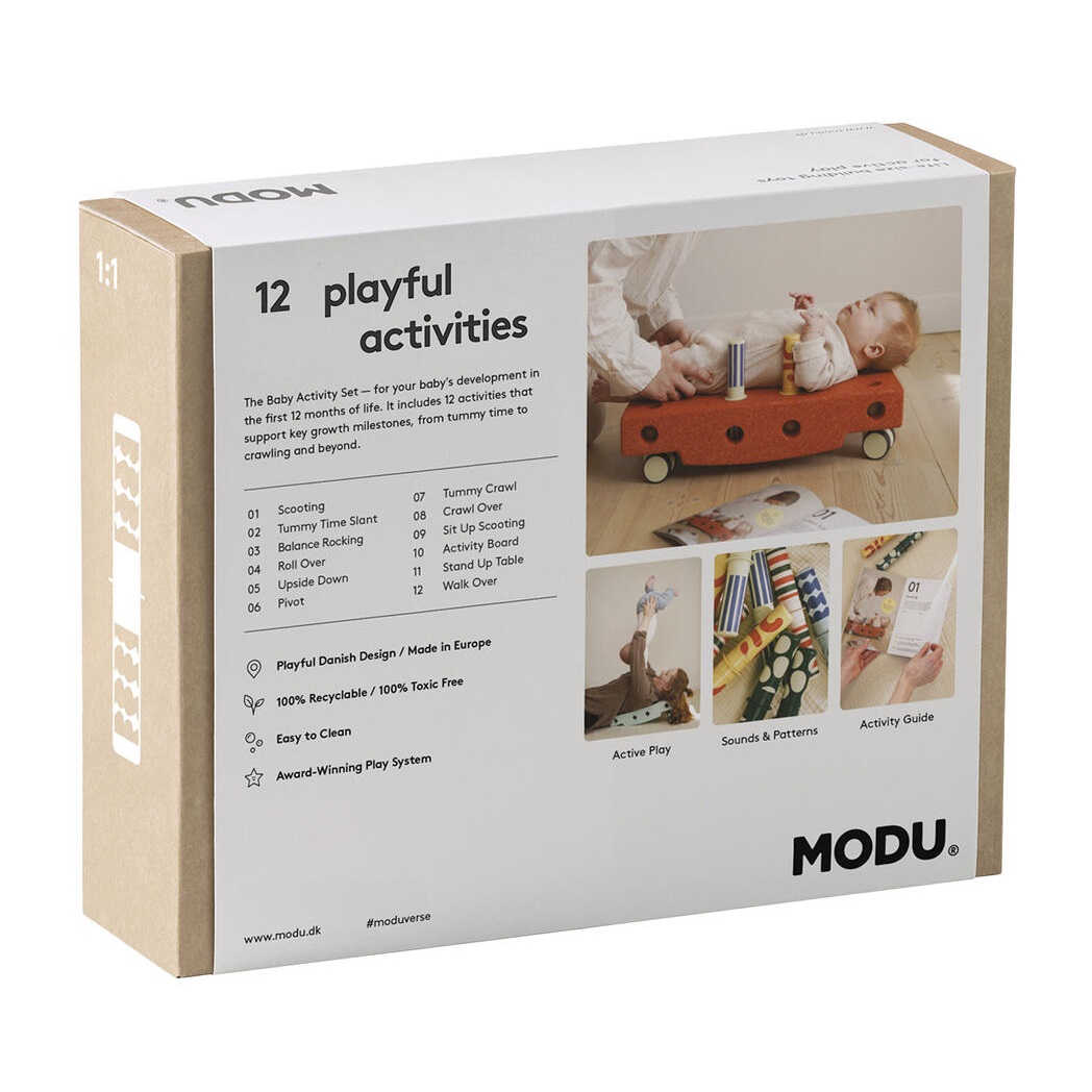 MODU - Zestaw Aktywnego Dziecka został opracowany we współpracy z terapeutką zajęciową, Anną Sundby Jensen. Do zestawu dołączony jest Przewodnik Aktywności zawierający 12 ćwiczeń na pierwsze 12 miesięcy życia dziecka. Przewodnik zawiera zdjęcia i instrukcje przedstawiające najważniejsze etapy rozwoju motorycznego, począwszy od karmienia, leżenia na brzuszku po raczkowanie i później pierwsze kroki.