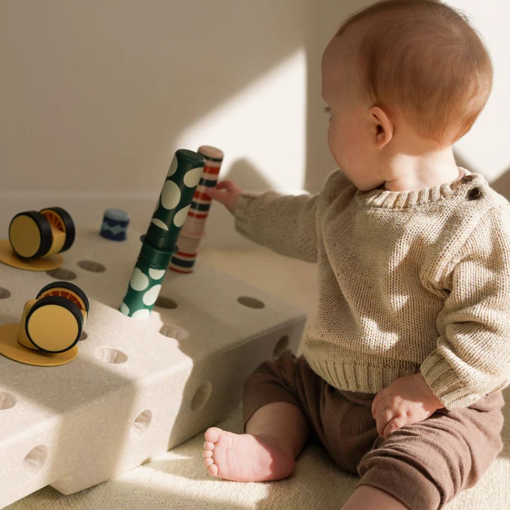W zestawie poza sensorycznym blokiem piankowym, dzięki któremu maluszek może się położyć, chwiać, przechylać i kołysać znajdują się kolorowe grzechotki z ciekawymi wzorami i dźwiękami, zapewniającymi stymulację wizualną i sensoryczną - to idealny duet, który gwarantuje ciekawą, kreatywną i pobudzającą zmysły dziecka zabawę.
