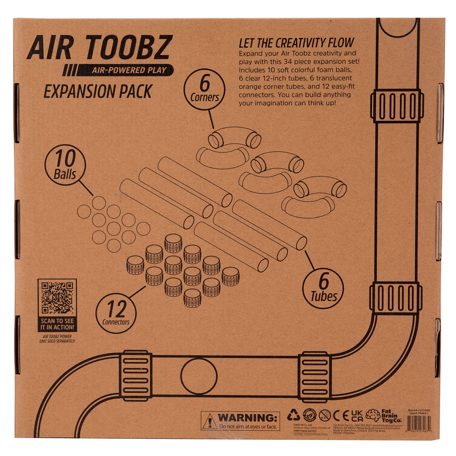 Zestaw dodatkowych tub i piłek rozszerzających możliwości Dmuchawy Air Toobz. Zestaw zawiera 6 prostych - 30cm rurek, 6 półokrągłych rurek, 12 łączników, 10 kolorowych kulek z pianki EVA. Zestaw podwaja długość zestawu podstawowego Air Toobz.