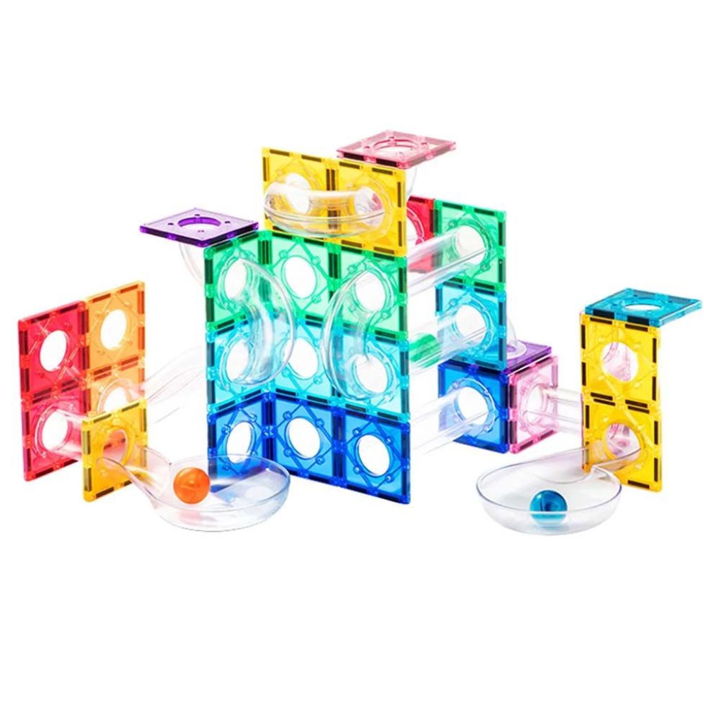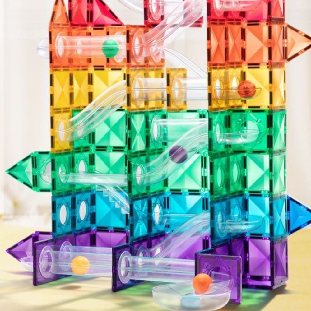 Magnesy ukryte w elementach pozwalają łączyć części bez użycia kleju i narzędzi, dzięki czemu konstrukcje są stabilne i bezpieczne. Przezroczyste rurki umożliwiają obserwowanie ruchu kulek, co daje dzieciom ogromną satysfakcję i poczucie sukcesu. To zabawka, która angażuje całą rodzinę – wspólne budowanie torów to gwarancja świetnie spędzonego czasu!