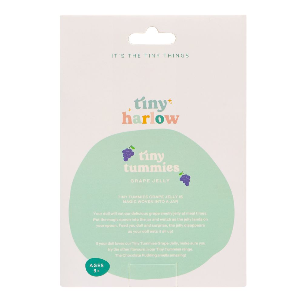 Cechy Tiny Tummies – magicznego słoiczka z łyżeczką do karmienia lalek Tiny Harlow - Winogrono: