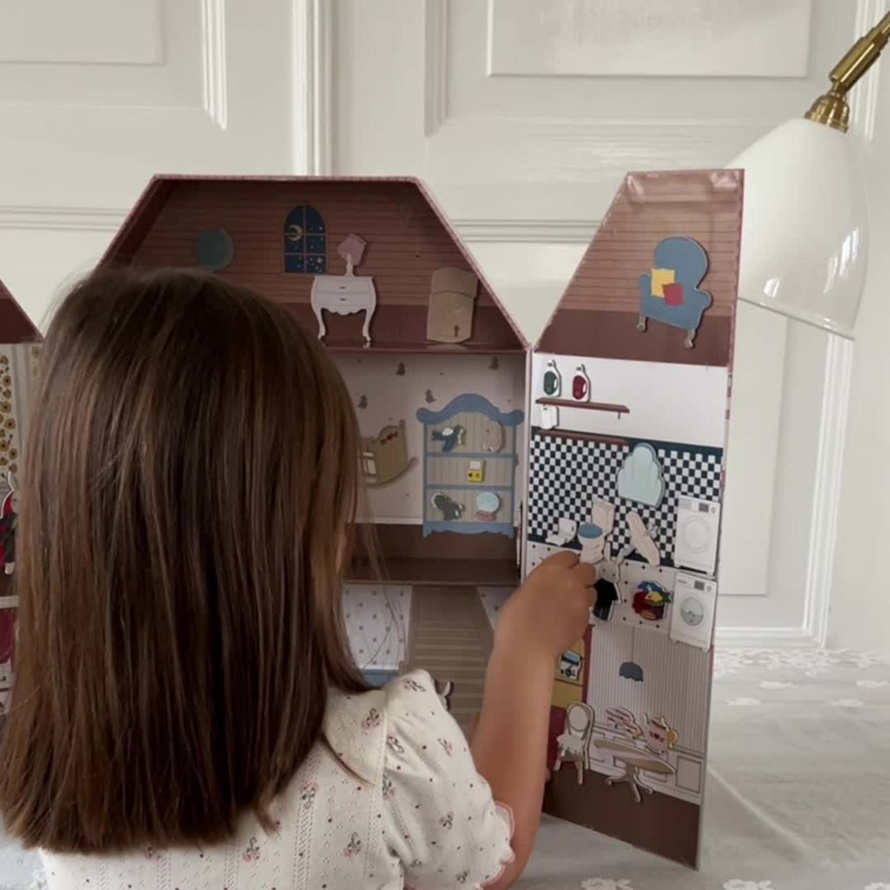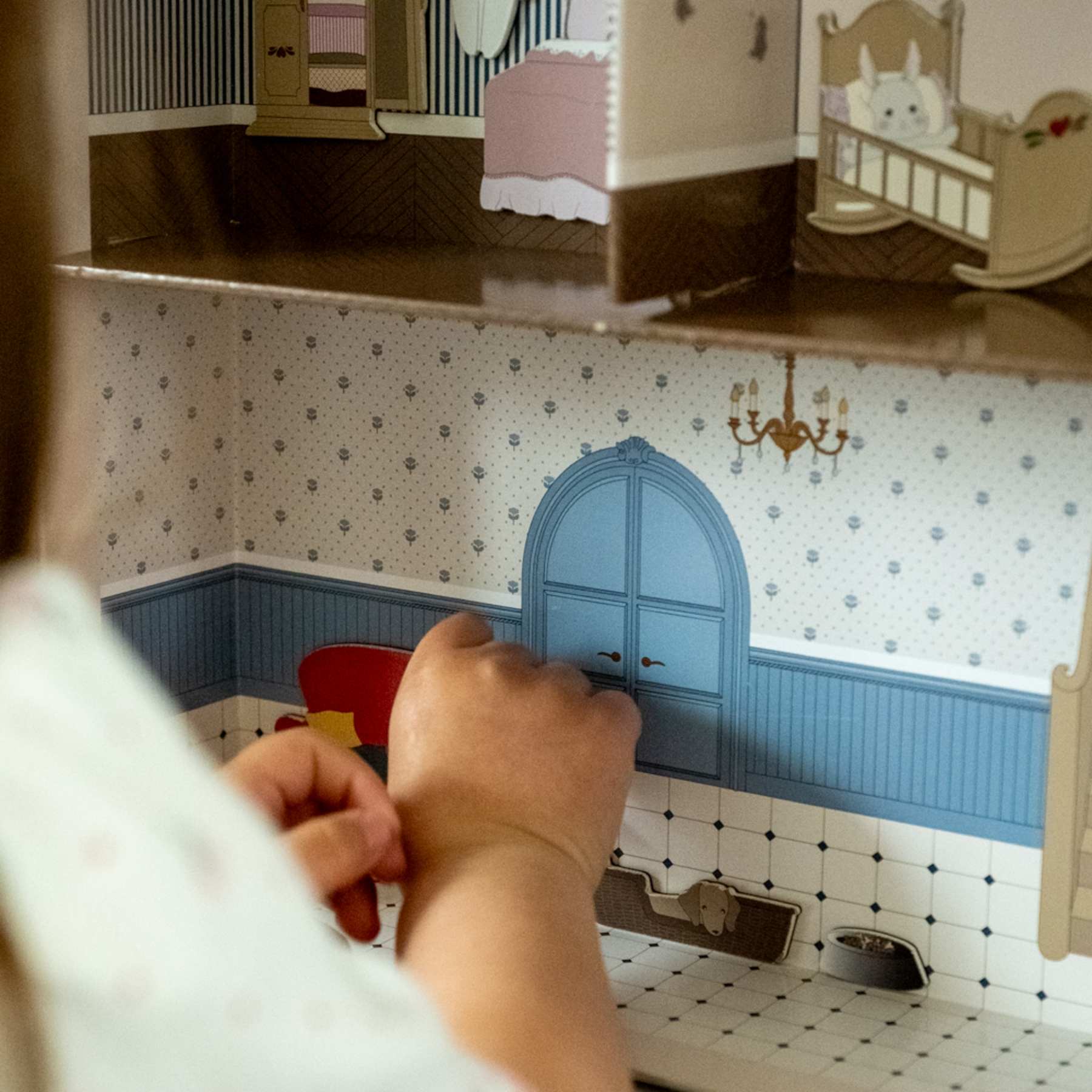 Zewnętrzna strona domku zachwyca pastelowymi odcieniami oraz subtelnymi kwiatowymi detalami, a po otwarciu skrywa trzy piętra pełne kolorowych pokoi. Wnętrze każdego pokoju zdobią urocze ilustracje mebli i dodatków, stanowiące doskonałe tło do snucia autorskich opowieści i odgrywania rozmaitych scenariuszy.