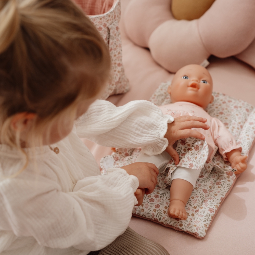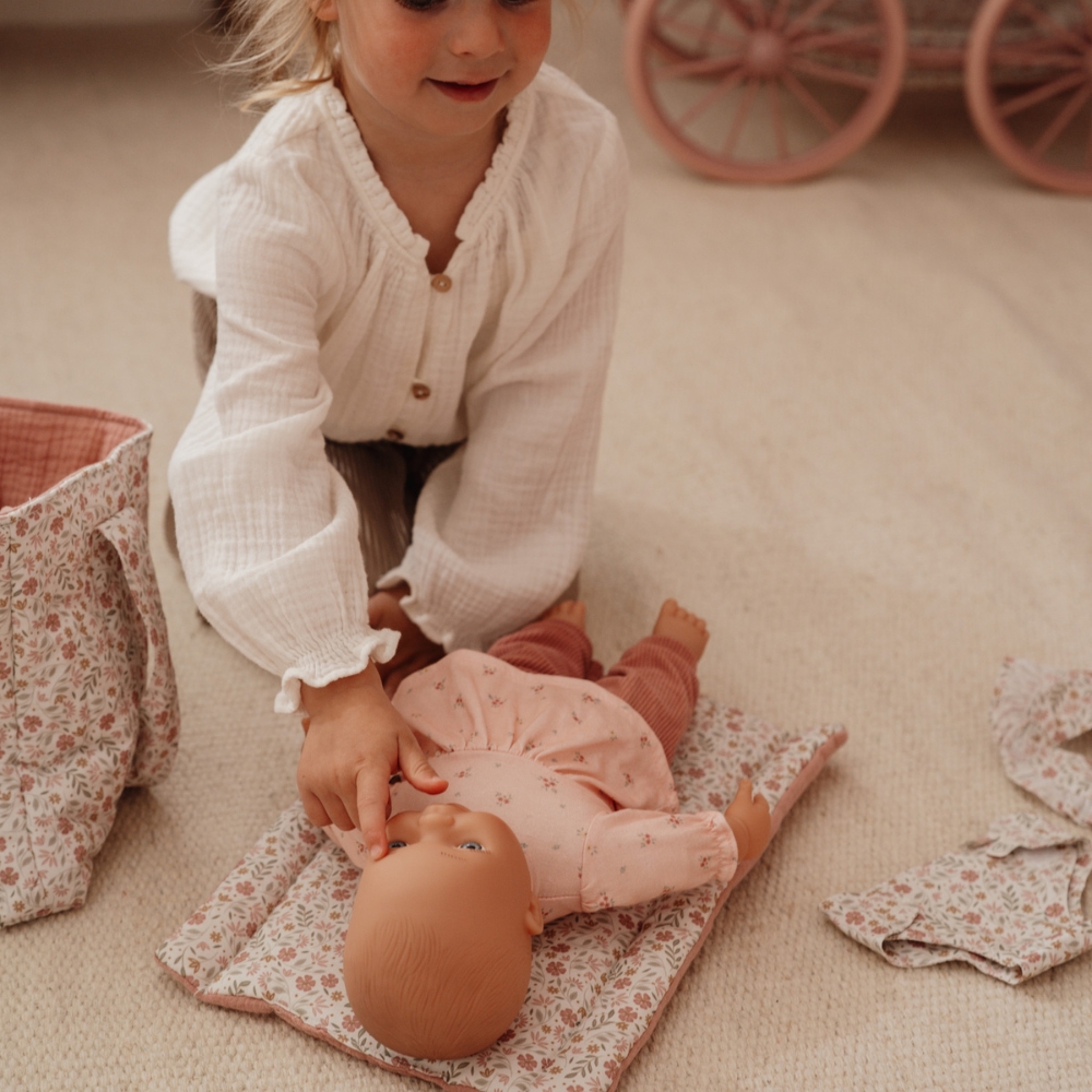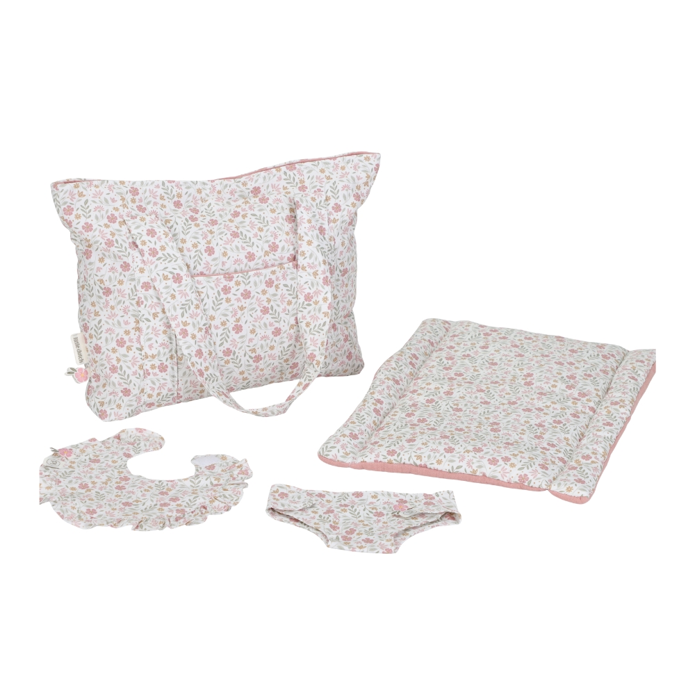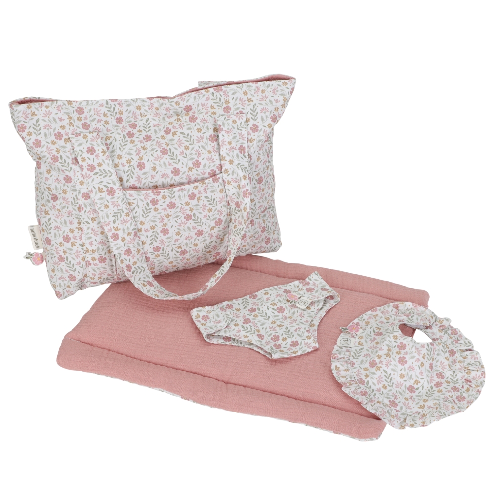 Little Dutch - urocza torba na pieluchy i akcesoria dla lalek Soft Flowers - zabawa, która uczy troski i empatii